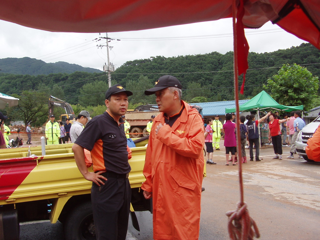 도소방본부 춘천소방서직원 의용소방대 여러분들이 새벽1시부터 산사태인명구조활동과 자원봉사