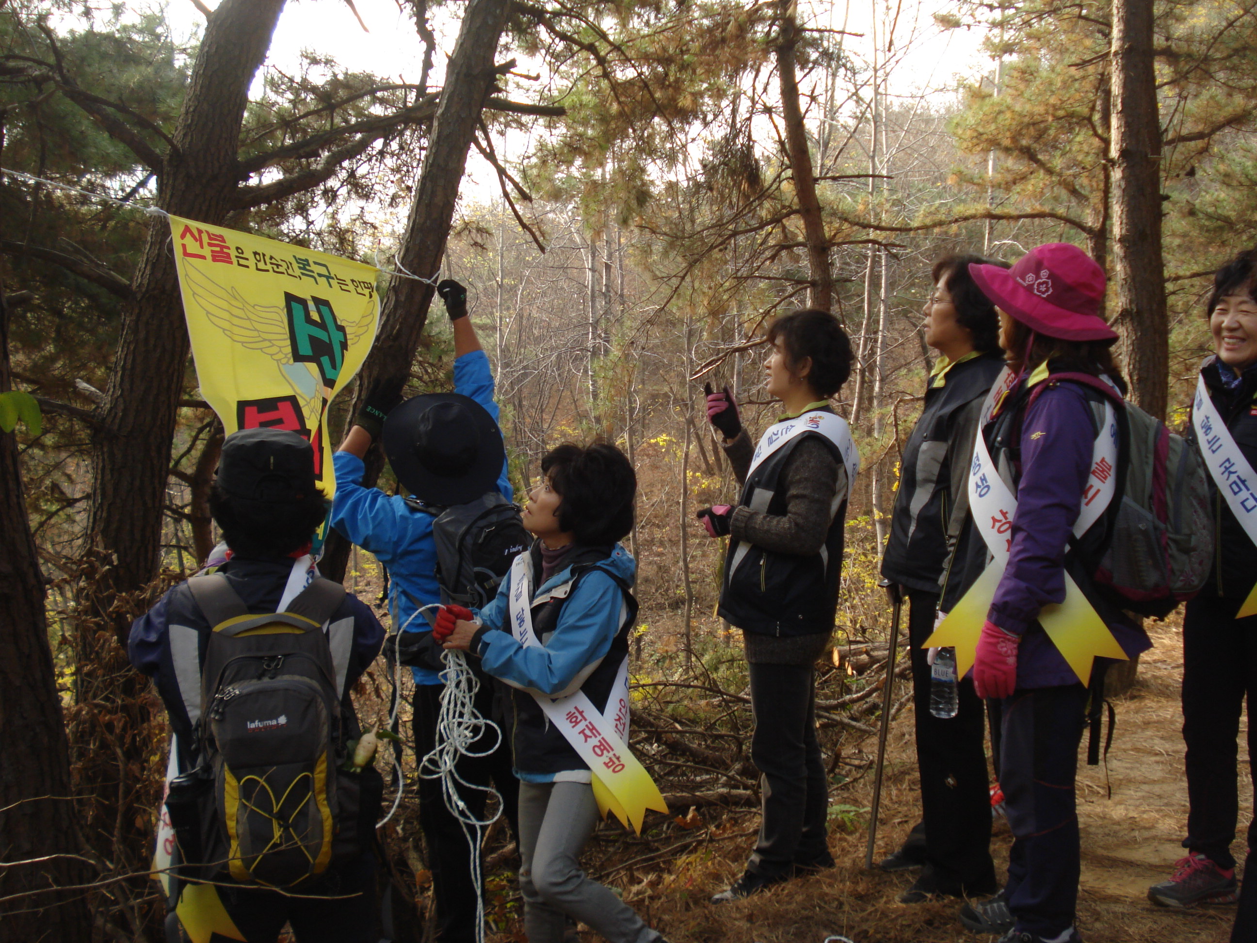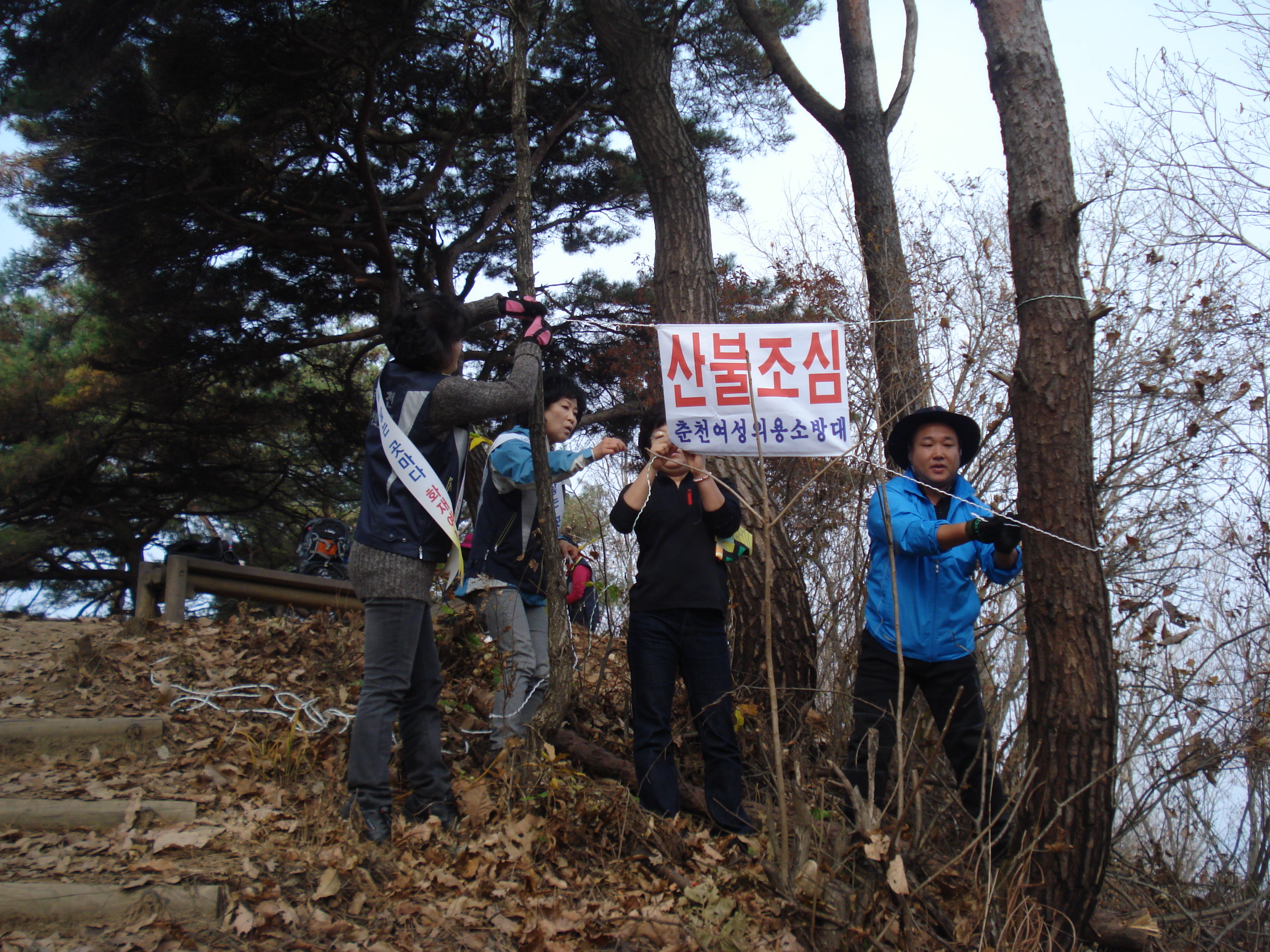 11월4일 드름산에 불조심캠페인 현수막 달기