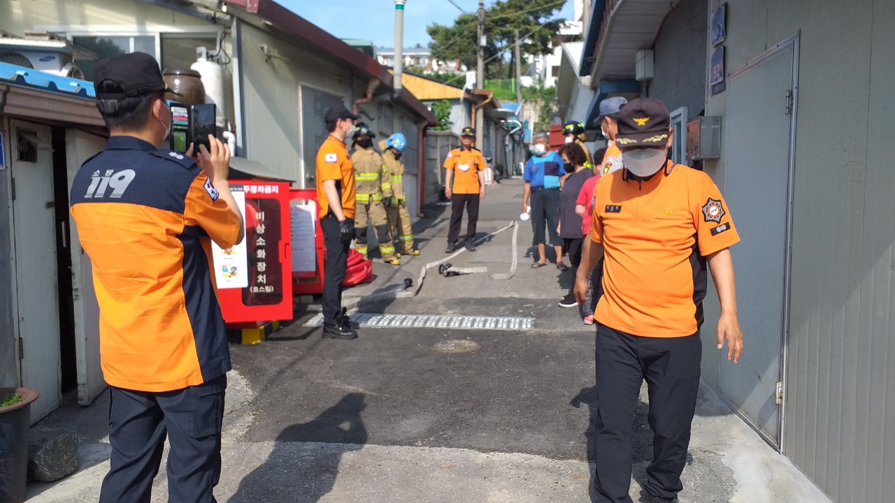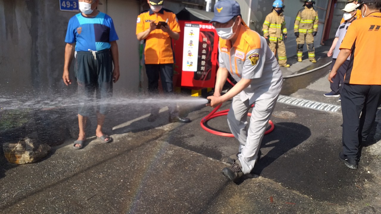 이날 훈련에서는 신규 비상소화장치가 설치 되어 있는 4곳의 장소에서 지역주민과 의용소방대, 소방관들이 합동으로 훈련을 진행했다.