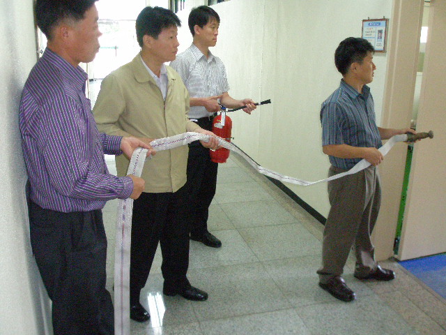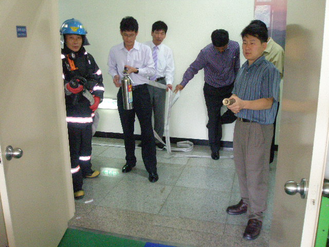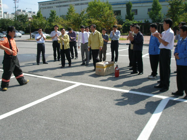 이번 훈련의 내용은 화재신고 및 경보,대피훈련, 초기화재 진압훈련, 합동화재진압훈련으로