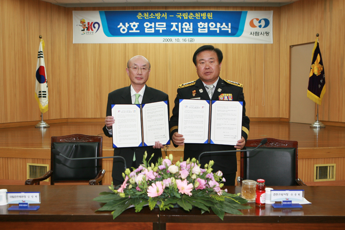 춘천소방서(서장 유용현)는 10.16(금) 11시 본서 대회의실에서 국립춘천병원(원장 김창현)과 상호 업무지원 협약식을 개최하였다.
