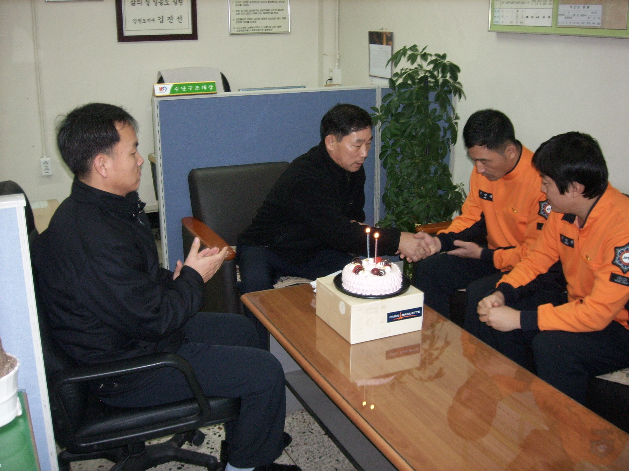 소양호수난구조대(대장 문종찬)에서는 지방소방교 승진시험 합격한 직원들을 축하하는 자리를 마련하였습니다 수난구조대장은 이번 승진시험 합격자에게 축하와 함께 소방의 무궁한 발전을 위해 더욱 노력하여 줄 것을 당부하였습니다.
