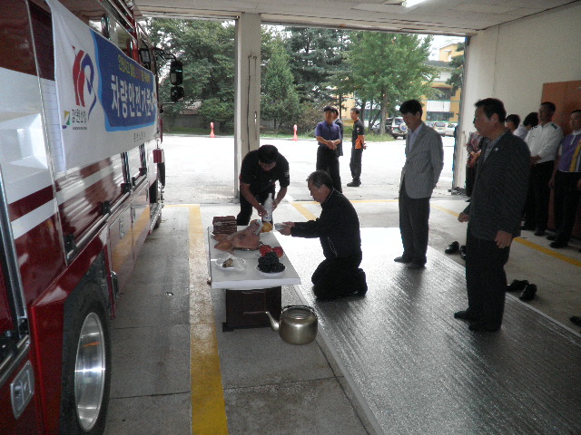 춘천소방서(서장 조완구) 석사119안전센터(센터장 소방위 반종범)에 새로운 펌프차(석사펌프25호)가 배치되어 금일 차량 안전기원제를 실시하였습니다. 서장님과 과장님, 의소대장님 등 많은분들께서 참석하시어 차량과 대원들의 무사고, 안전을 기원해주셨습니다. 모두들 안전운전하세요^^