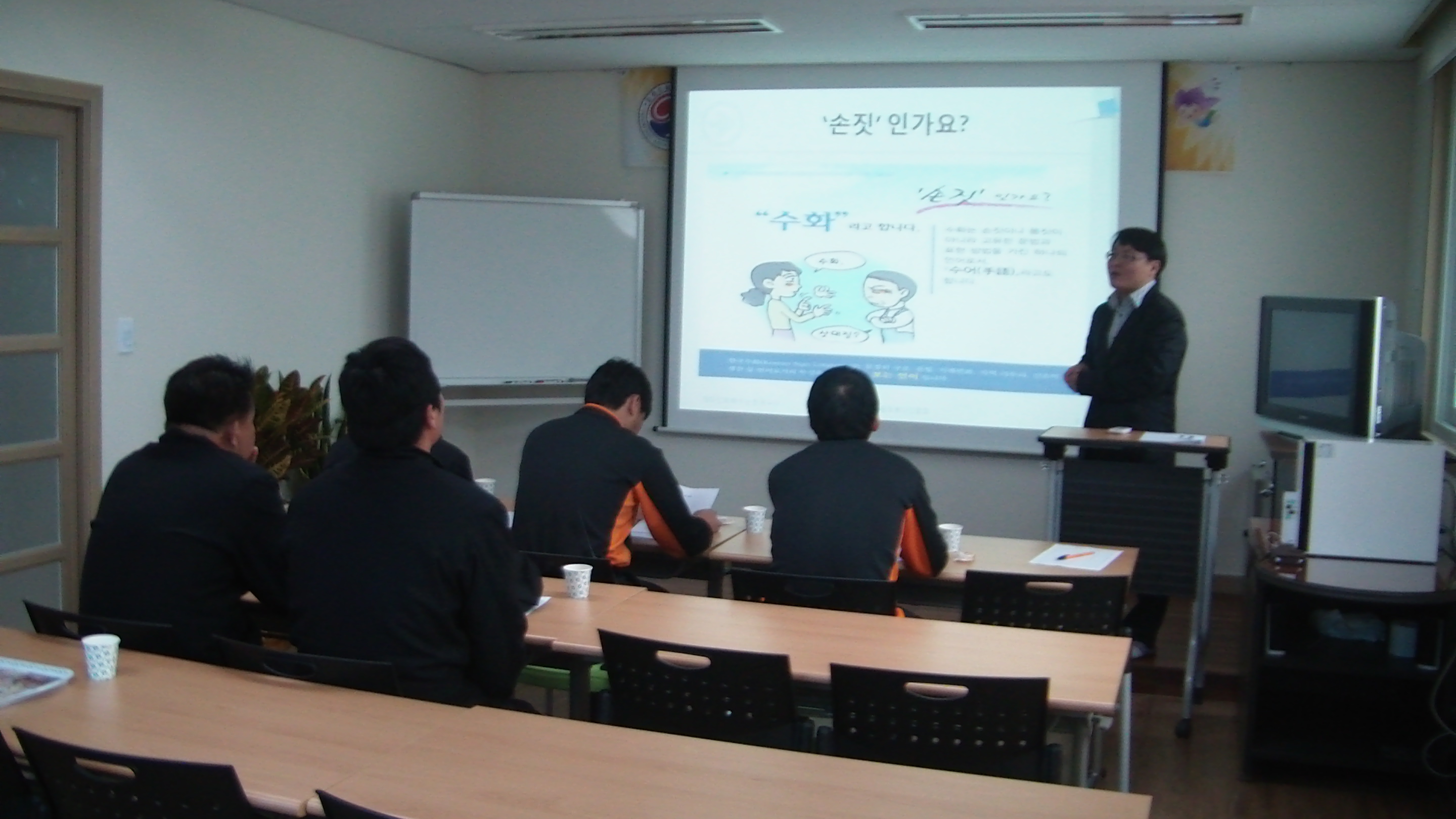 화천119안전센터(센터장 신상건)는 11일 강원농아인협회 화천지부 사무실에서 "농문화의 이해"란 제목으로 농인에 대해 배우는 시간을 가졌습니다. 농인은 우리와 함께 살아가는 이웃으로 필담, 구화, 수화 등으로 소통하는 방법이 있으며, 무엇보다 열린 마음으로 대화하는것이 가장 중요하다는 사실을 배우는 귀중한 시간이었습니다. 앞으로 11주간 일주일에 2회 교육을 받으며, 많은것을 배우고 익혀 현장에서 농인들을 잘이해하고, 소통할수 있는 화천119안전센터가 되겠습니다.