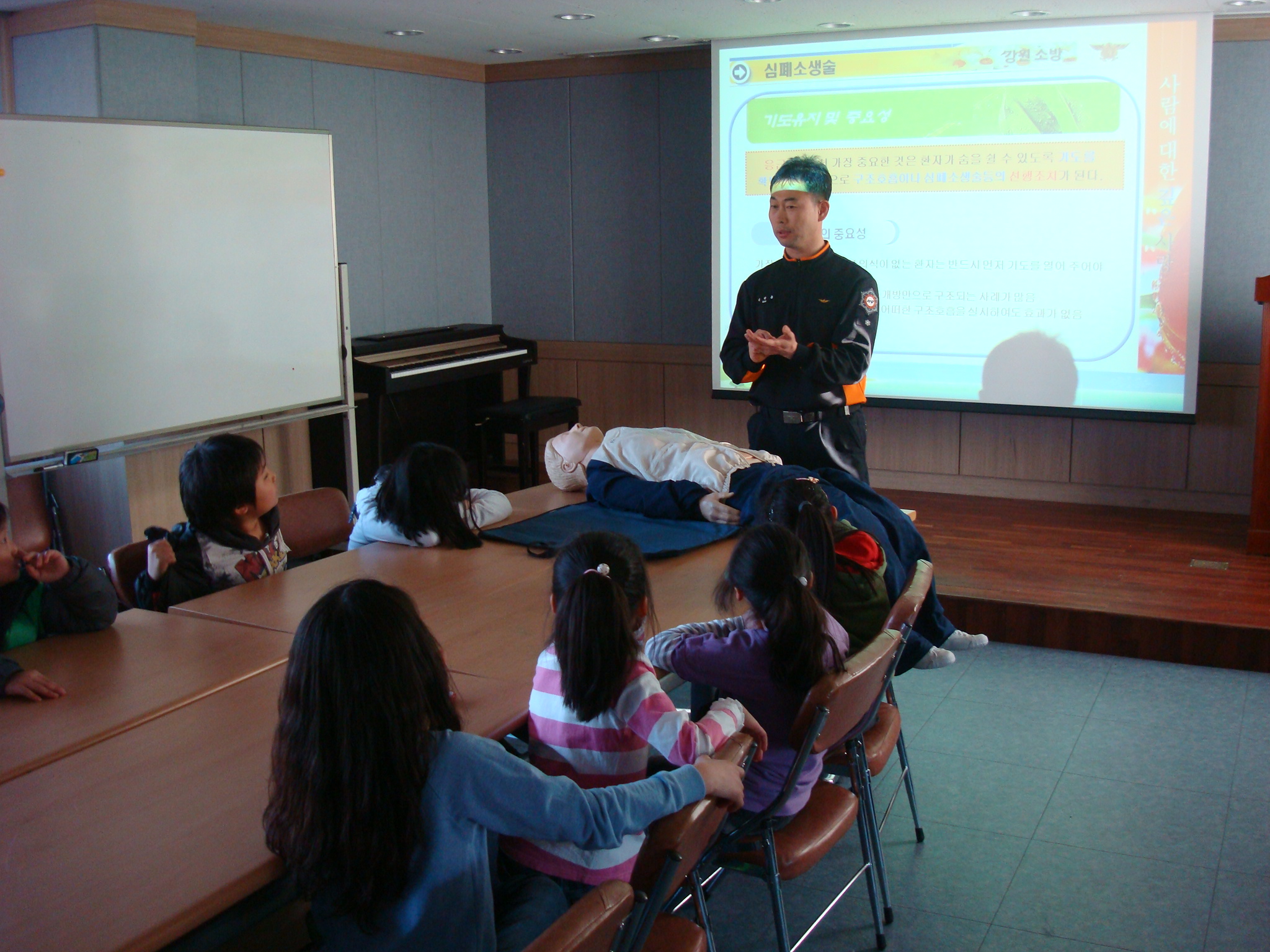 2012. 3. 19. 양구119안전센터(센터장 소방경 강경훈)에서는 양구행복나눔센터 드림스타트 대상 아동 15명에게 구급교육을 실시하였습니다. 2팀장 소방위 심성용은 응급처치 요령, 심폐소생술 방법, 119신고요령 등을 아이들 눈높이에 맞춰 교육을 하였습니다.