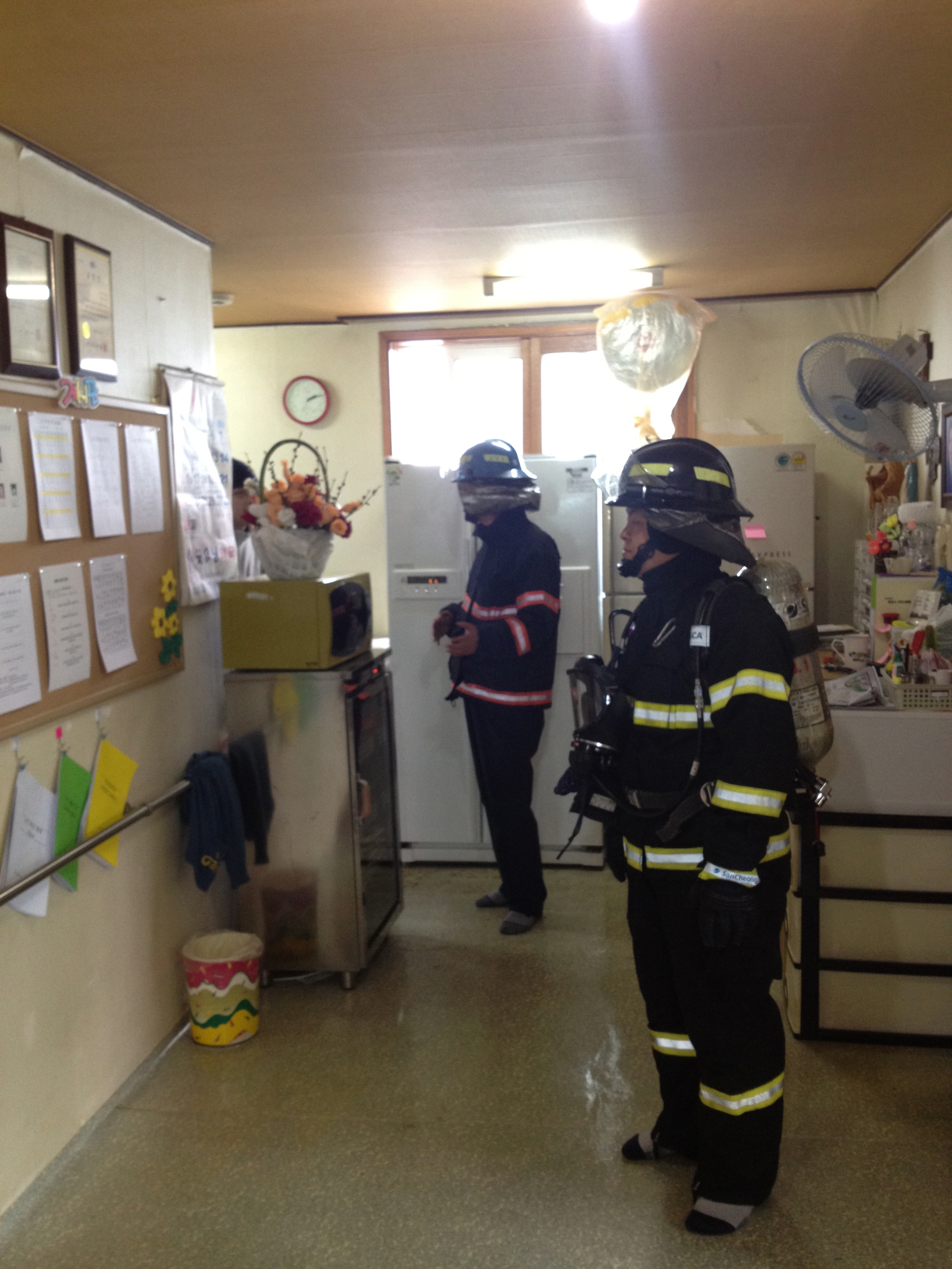 소양119안전센터(센터장 소방위 송치면)에서는 4.13 .(금) 14:00~15:00 사회복지시설<태양의 집>에서 소방훈련을 실시하였습니다. 화재시 초기 소방시설 사용교육 및 입소자 대피유도훈련을 하였습니다.