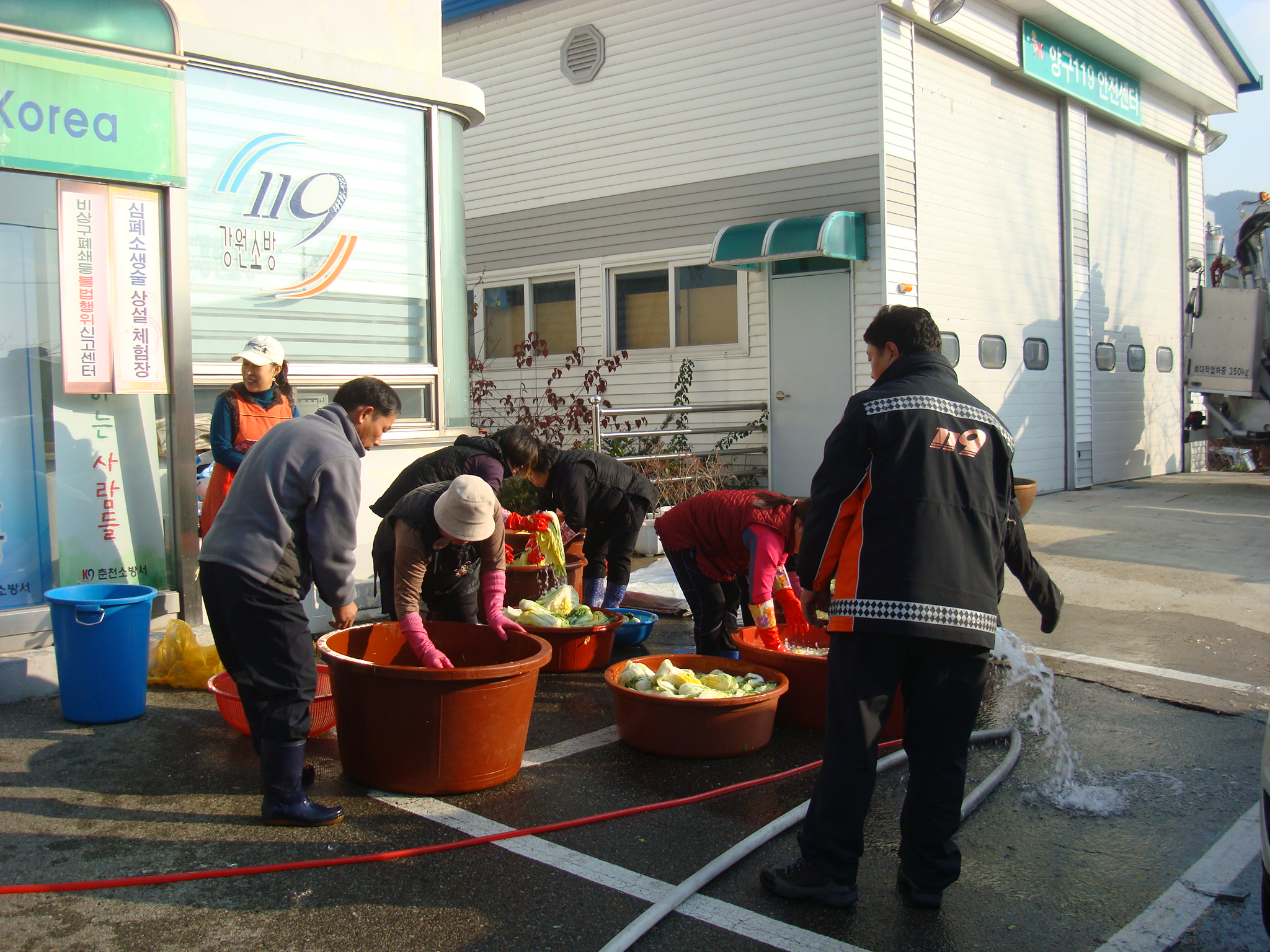 양구119안전센터(센터장 소방경 문종찬)는 금일 양구 여성의용소방대장 및 대원분들께서 추운 날씨에도 불구하고 직원들을 위해 김장을 담궈 주었습니다.