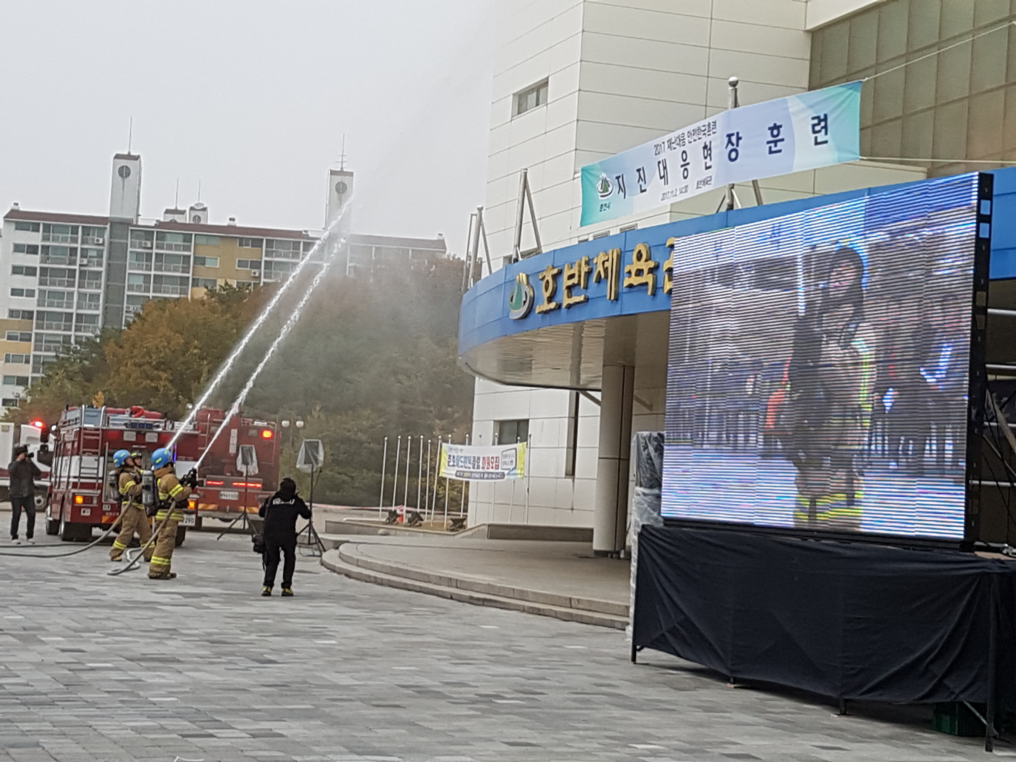 춘천소방서(서장 안중석)는 2일 오후 2시 호반체육관에서 춘천시, 경찰서 등 7개 유관기관·단체 100여명이 참여한 가운데 지진 발생에 따른 건물붕괴 상황을 가상한 2017 재난대응 안전한국훈련을 실시했다.