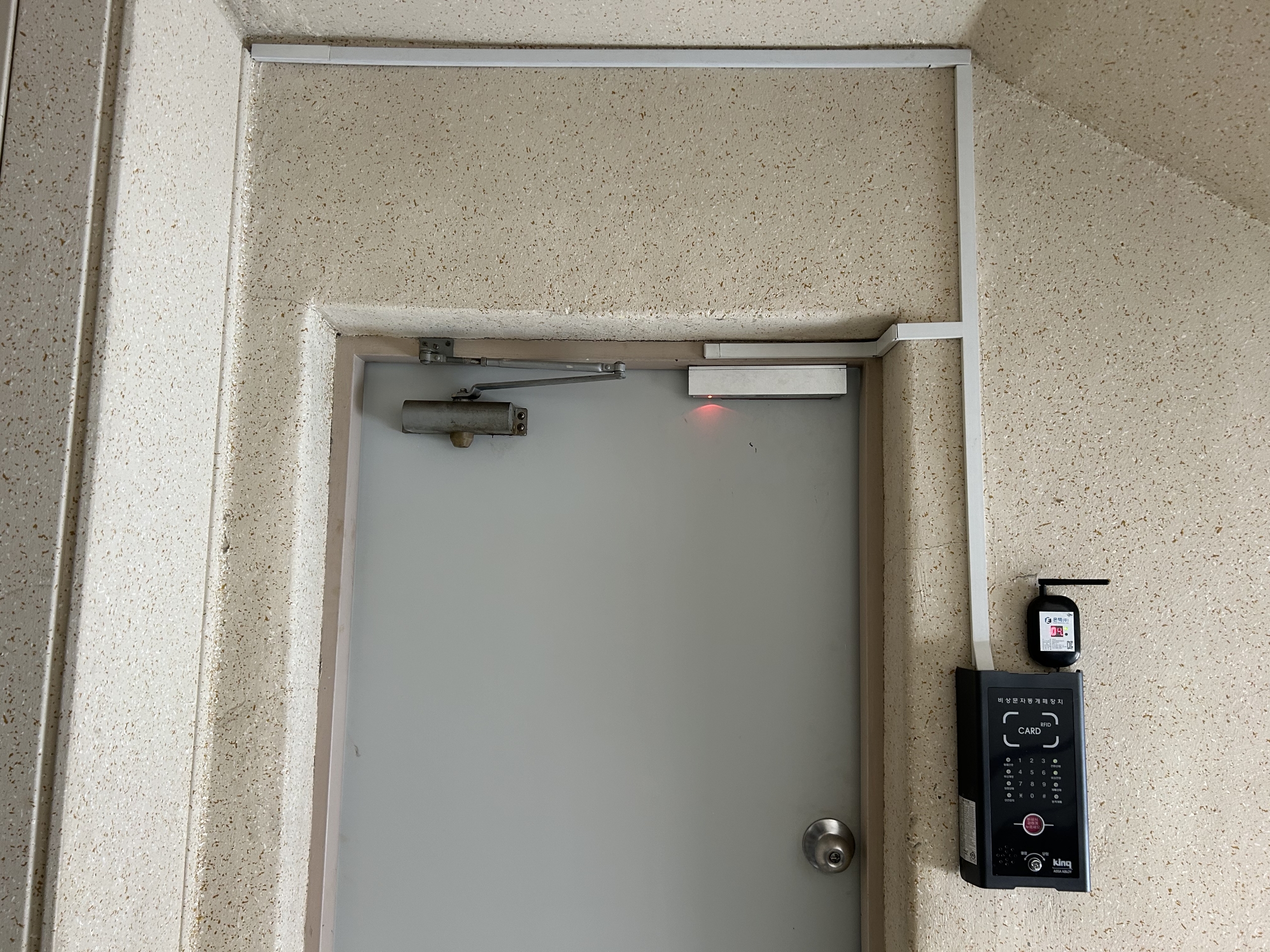 옥상출입문 자동개폐장치는 화재 발생시 소방시설과 연동해 잠겨있는 비상출입문을 자동으로 개폐시키는 장치이다. 평상시에는 침입범죄 등 안전사고를 막고, 화재시에는 피난 대피로를 확보하는 기능을 한다.