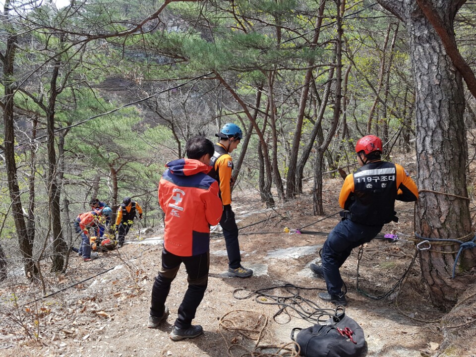 춘천소방서(서장 안중석)는 14일 오전 10시 삼악산 일원에서 구조대원 및 산악연맹 구조팀 등 15명이 참석한 가운데 민.관합동 산악구조훈련을 실시했다.