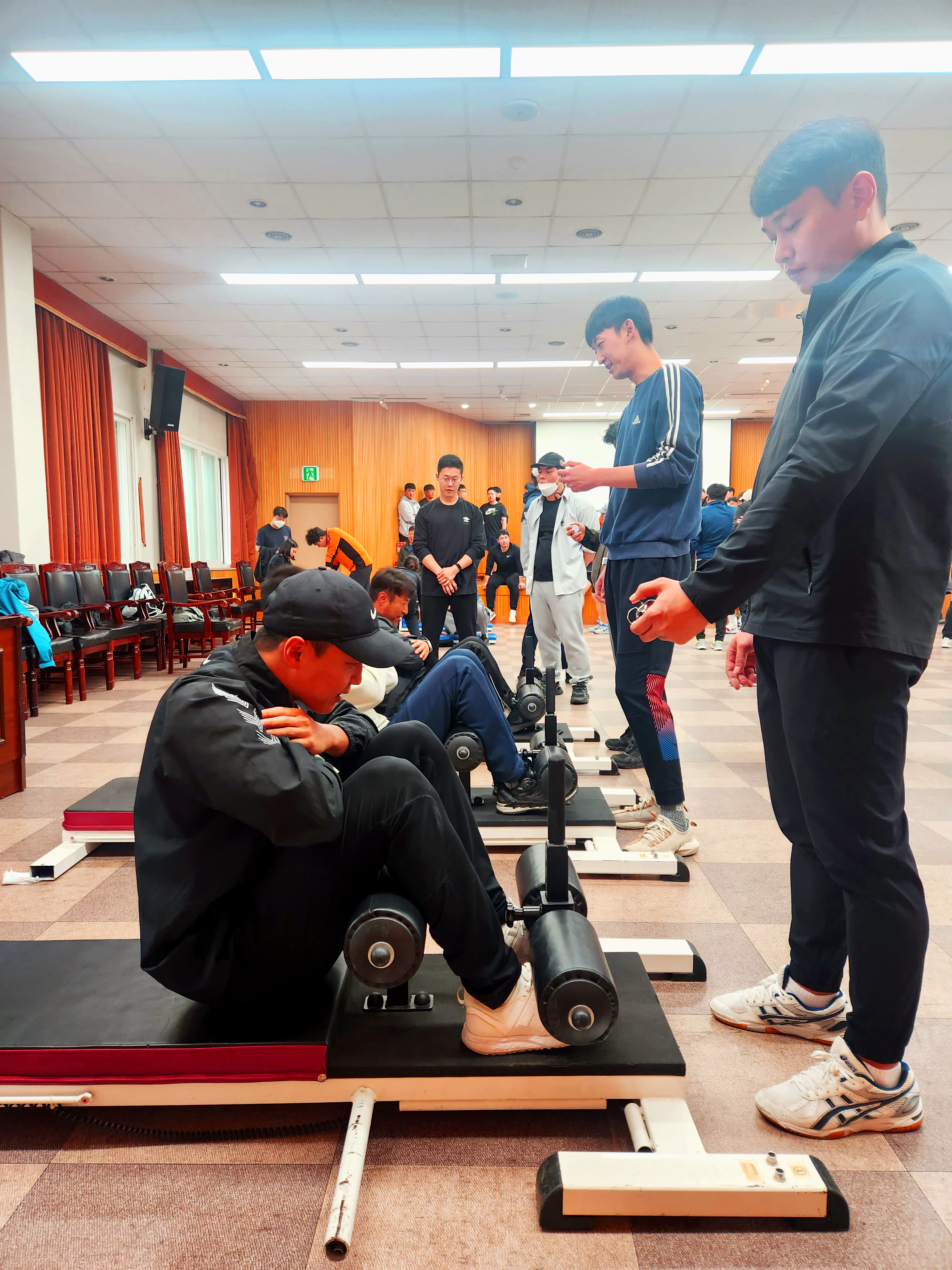 이날 검정은 오전ㆍ오후로 나눠 6개 종목에 대해 진행됐다. 종목은 ▲악력 ▲배근력 ▲윗몸일으키기 ▲좌전굴 ▲제자리멀리뛰기 ▲왕복오래달리기 등이다