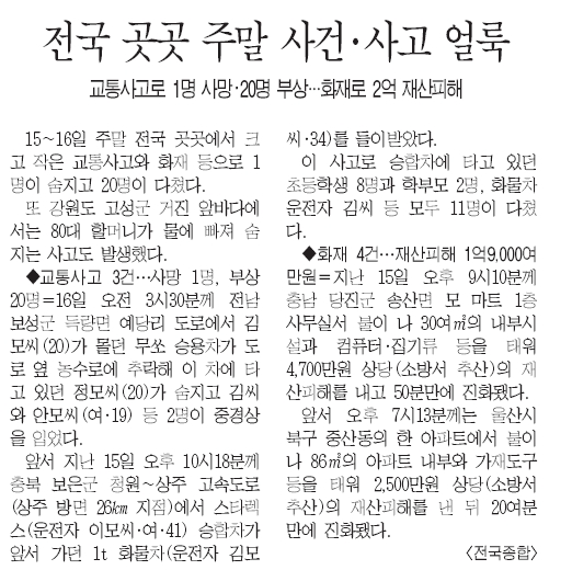 ▷ 주말,사건사고 잇따라