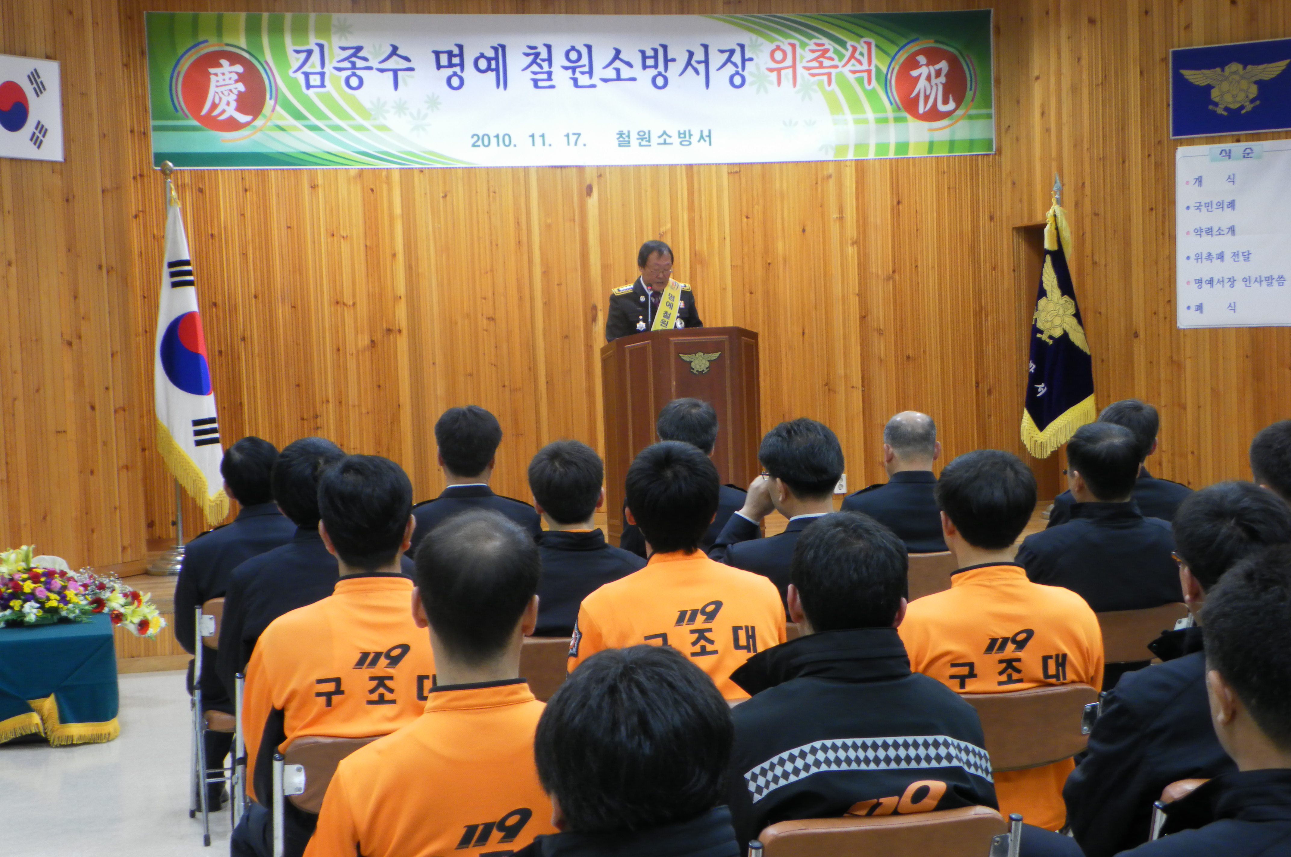 철원소방서(서장 최민철)은 17일 오전 10시 본서 대회의실에서 화재에 대한 주민들의 안전의식을 고취하고 소방행정 전반에 대한 홍보를 위해 철원군의회 김종수 의장에 대한 명예소방서장 위촉식을 가졌다.