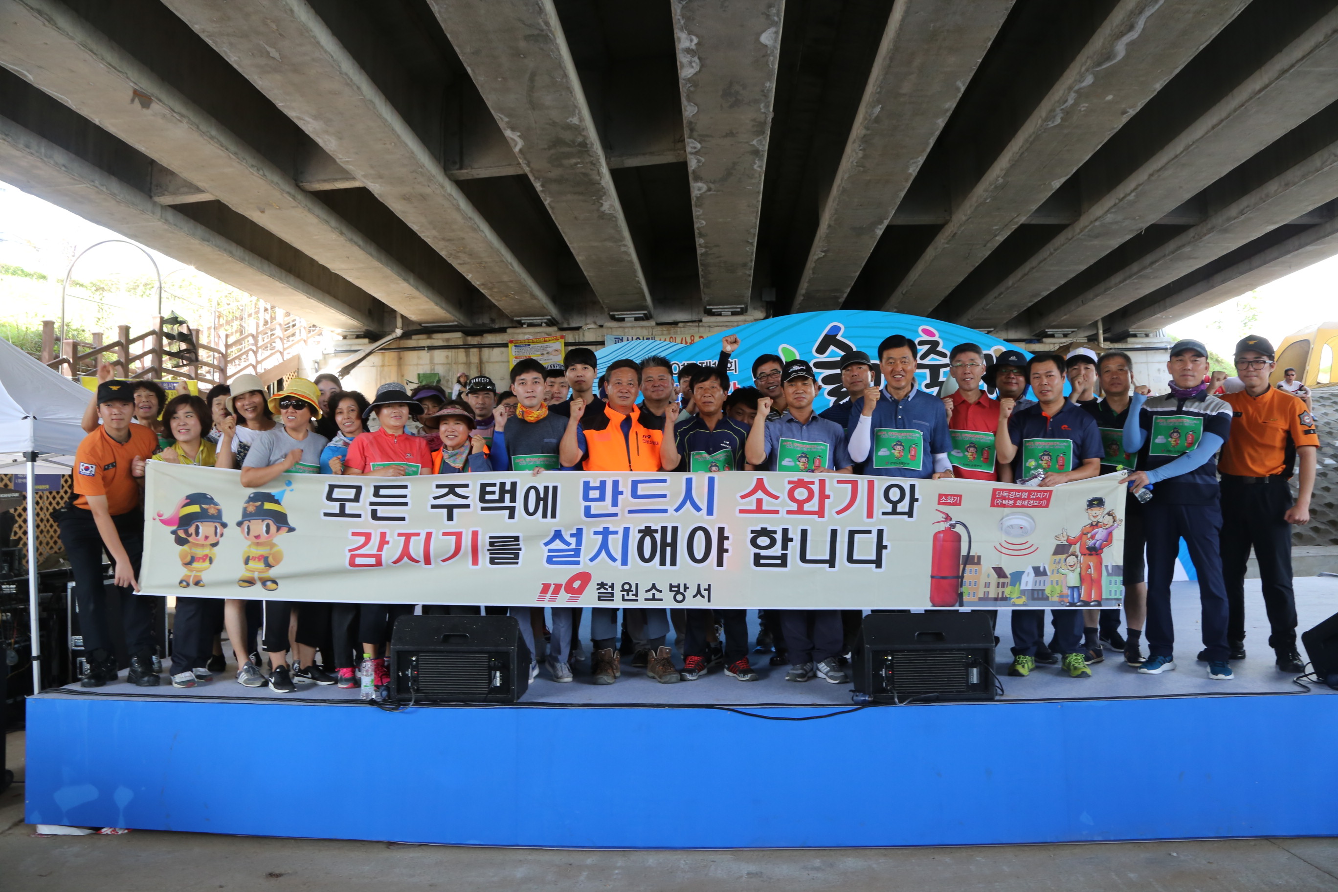 제11회 철원 화강 다슬기축제가 개막되는 축제장에서 소방공무원, 의소대원 등 50여명이 참여한 가운데 관광객들을 대상으로 ‘주택용 소방시설 설치촉진’ 홍보캠페인을 펼쳤다.