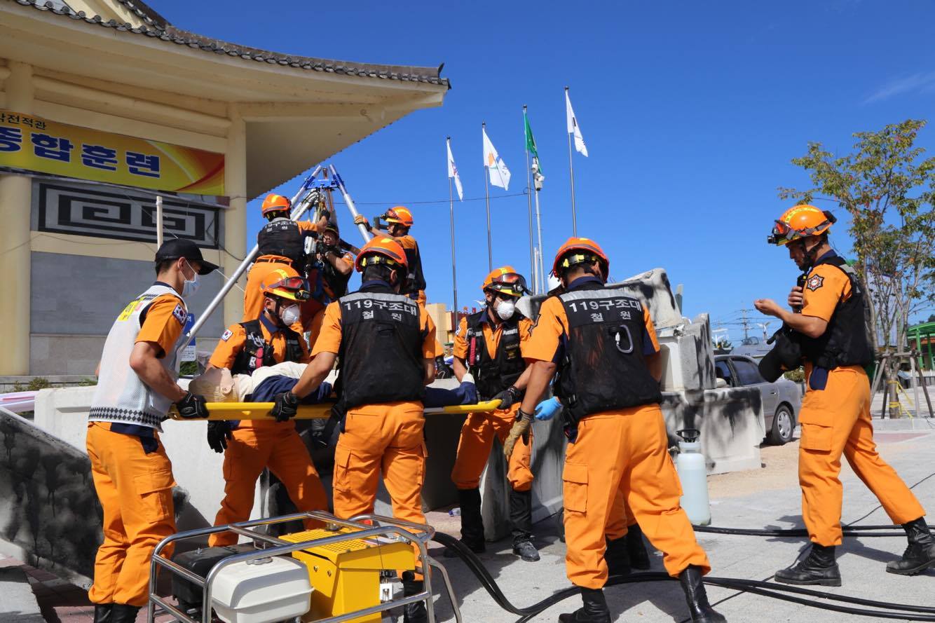 이번 훈련은 철의삼각전적관에서 가스폭발에 의한 건물붕괴 및 화재로 인한 다수사상자가 발생하는 상황을 가정해 자체 초기진화 및 인명구조·구급활동과 민·관·군 합동 긴급구조통제단 가동, 인명구조 및 화재진압활동 및 긴급구조지원기관단체 복구활동 등 일사분란하게 실제상황처럼 진행됐다.