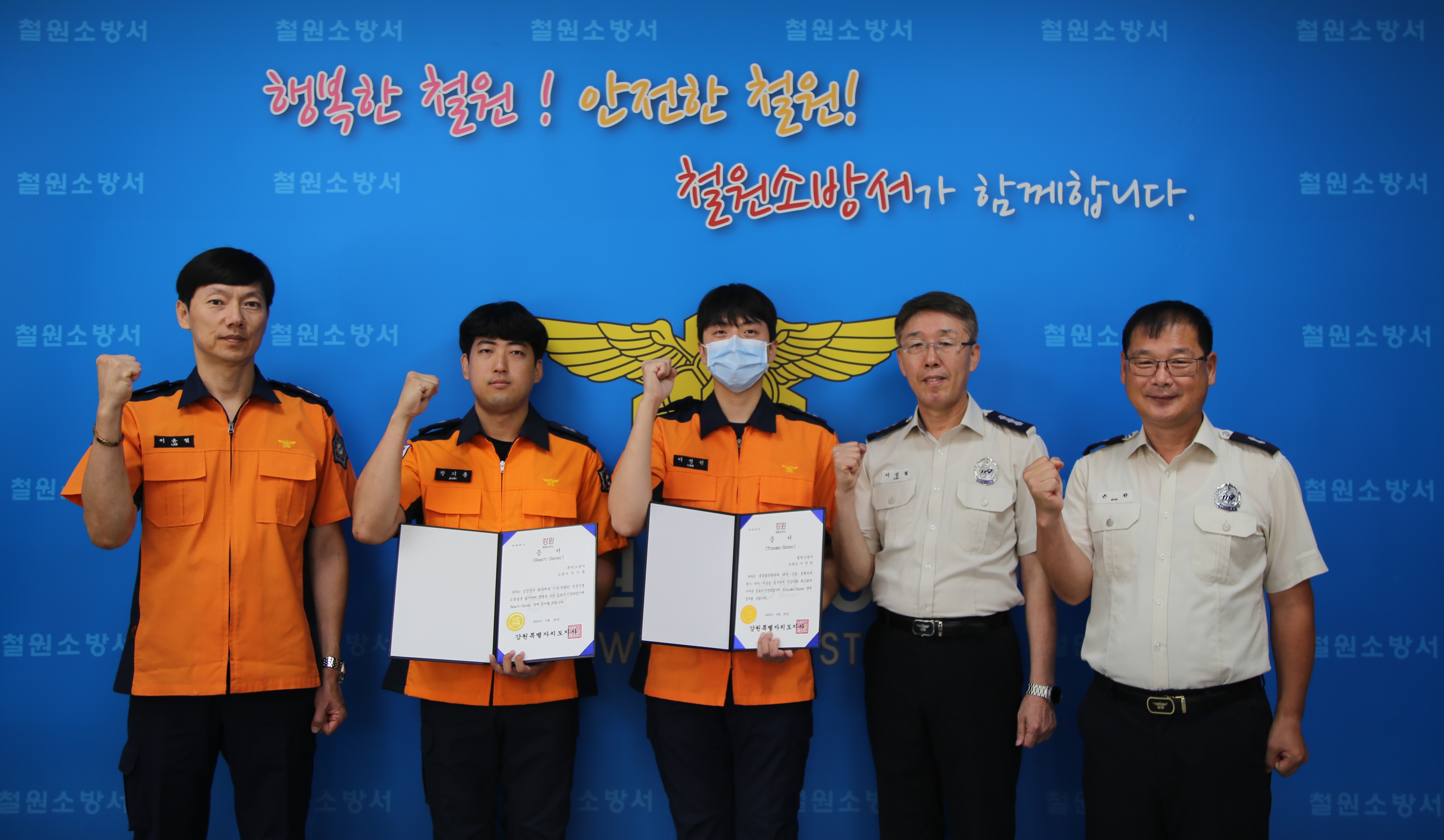 철원소방서 구급대원 3명은 18일 하트 세이버와 트라우마 세이버를 수상했다.