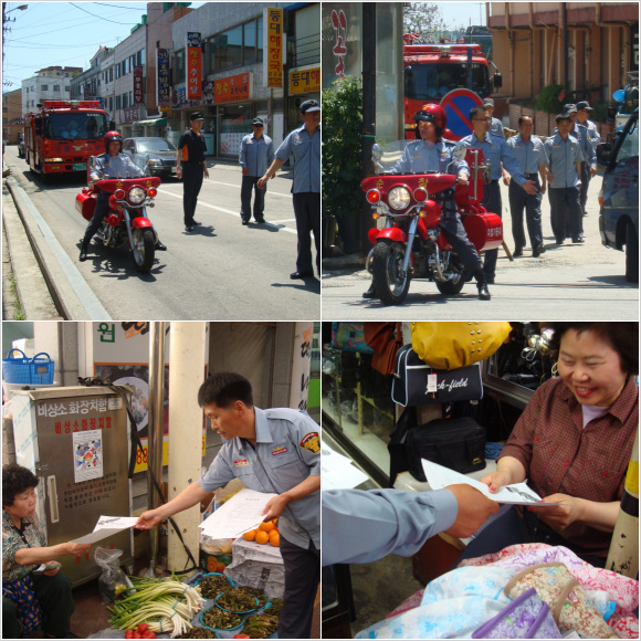 묵호119안전센터(센터장 이승원)는 5월17일(월) 묵호의용소방대원 20명과 소방이륜차 및 펌프차량을 이용하여 중앙시장에서 가두 캠페인, 홍보물 배부, 소방차 활용 길터주기 방송 및 시장 내 통행 장애대상 집중 지도 실시하였습니다.
