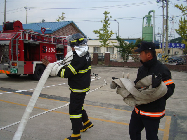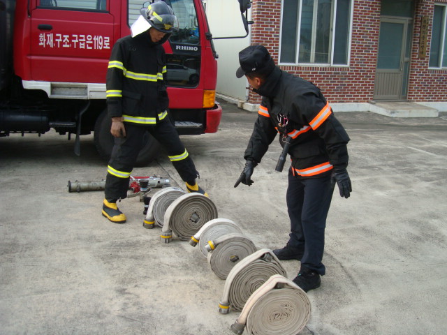 방수훈련 및 공기호흡기 착용훈련을 중점으로 실시했습니다.
