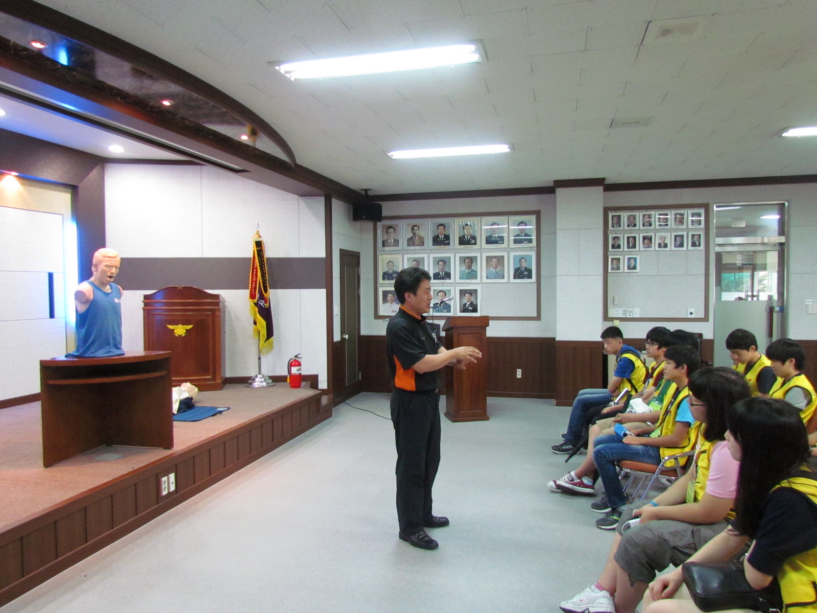 소방안전교육을 받고 관련 동영상 청취 후 생활응급처치 및 심폐소생술 실습과 청사후정에서 연기체험텐트를 통해 화재시 시야가 확보되지 않는 상황에서의 대피 체험도 가져봤습니다.
