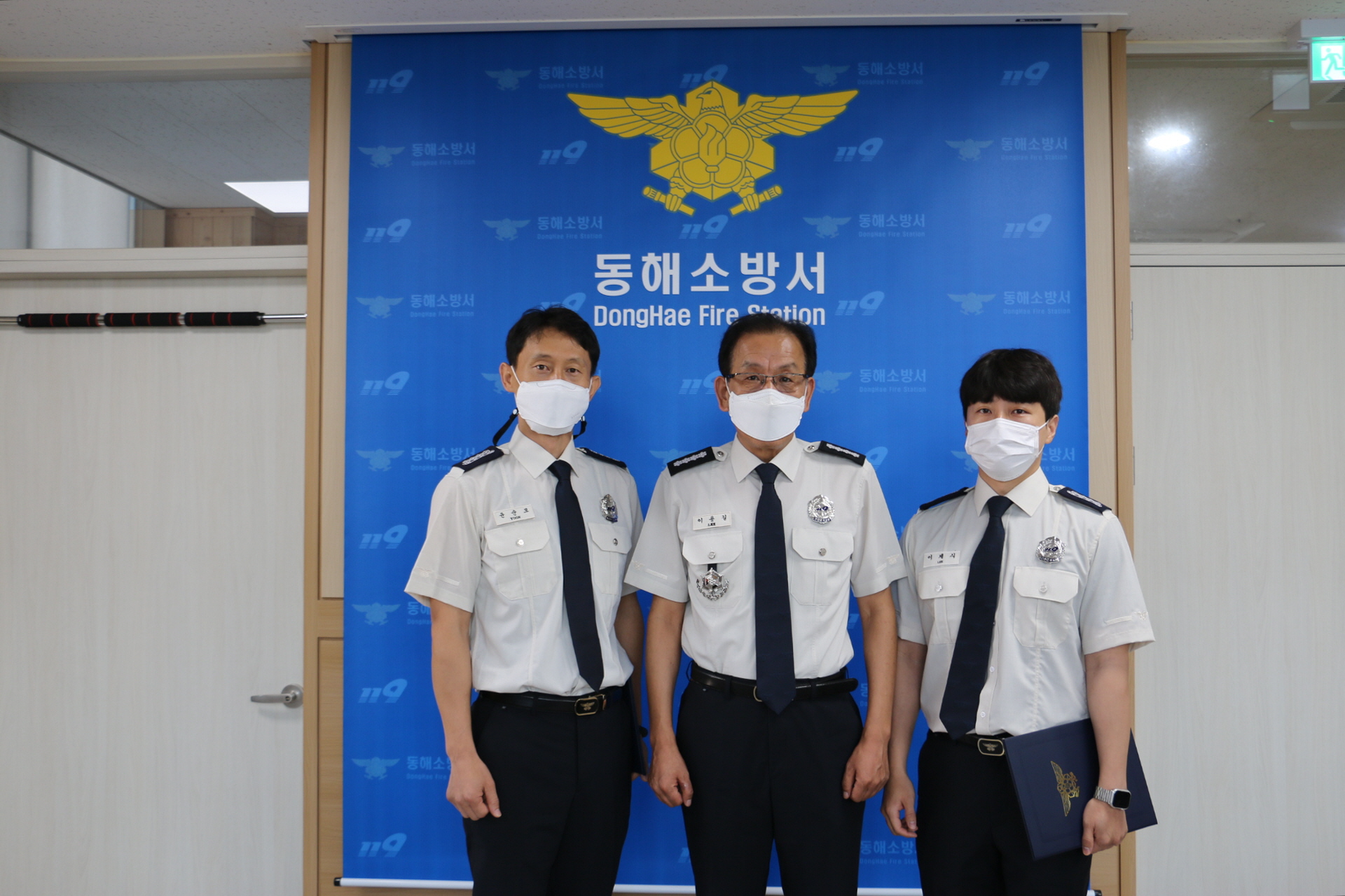 동해소방서(서장 이용길)는 8.10일 서장실에서 육아휴직후 복직하는 소방장 윤순모, 소방장 이제식을 복직발령 및 전보조치 하였습니다.