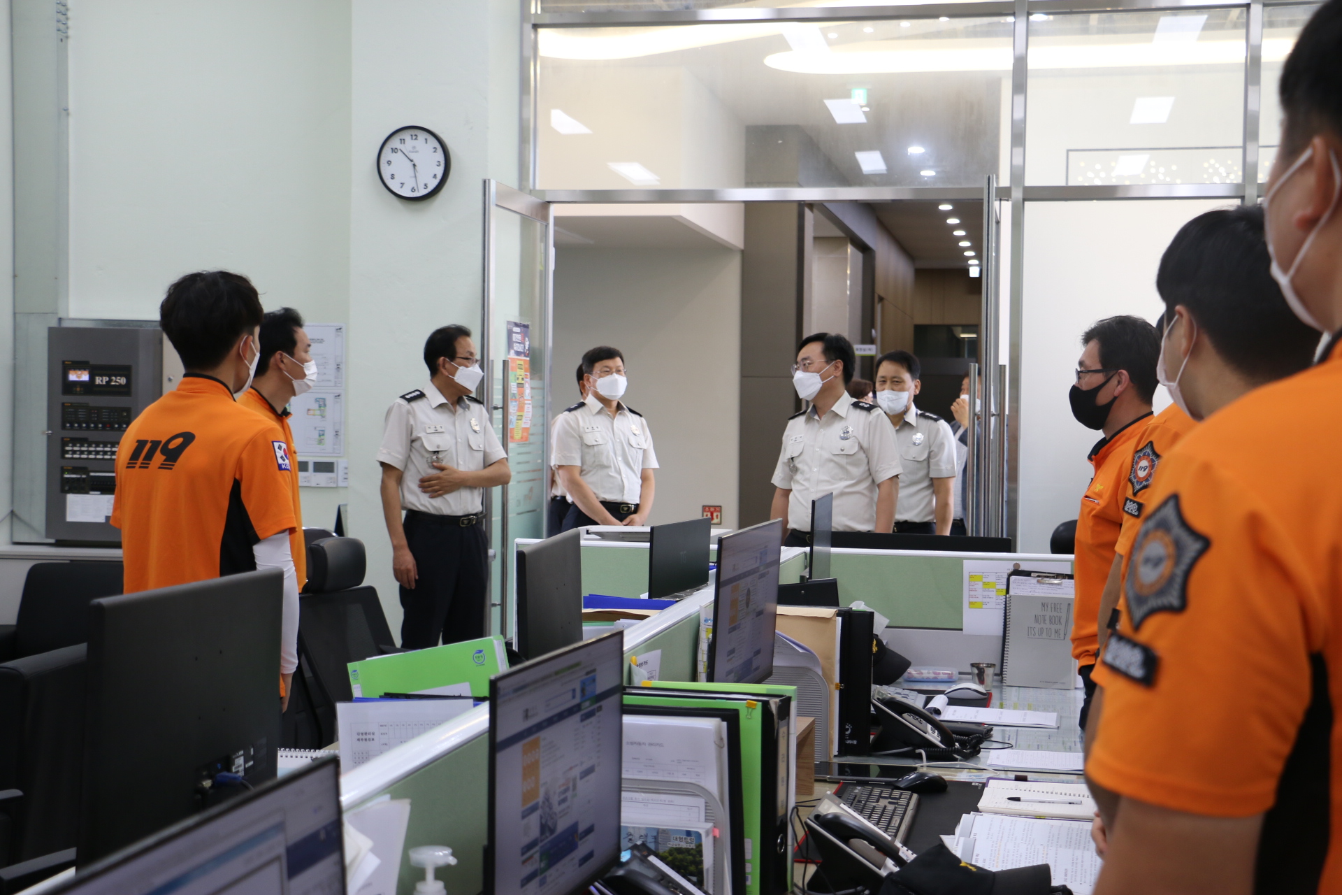 제15대 윤상기 강원소방본부장이 8월19일 09시 30분 동해소방서(서장 이용길)를 초도방문 소회의실에서 현안업무 의견청취 및 안전대책을 점검하고 코로나19관련 지원활동 등으로 고생하는 직원들을 격려하였습니다. 본부장님~ 동해소방서 방문을 환영합니다.^
