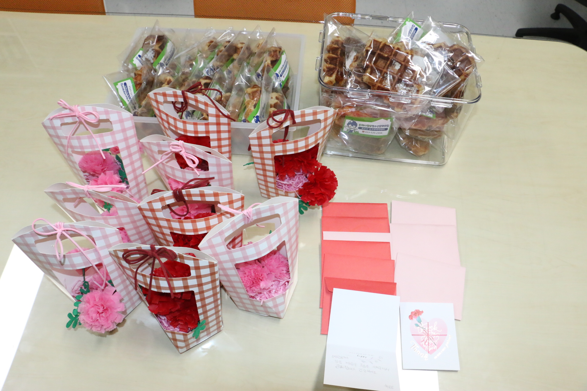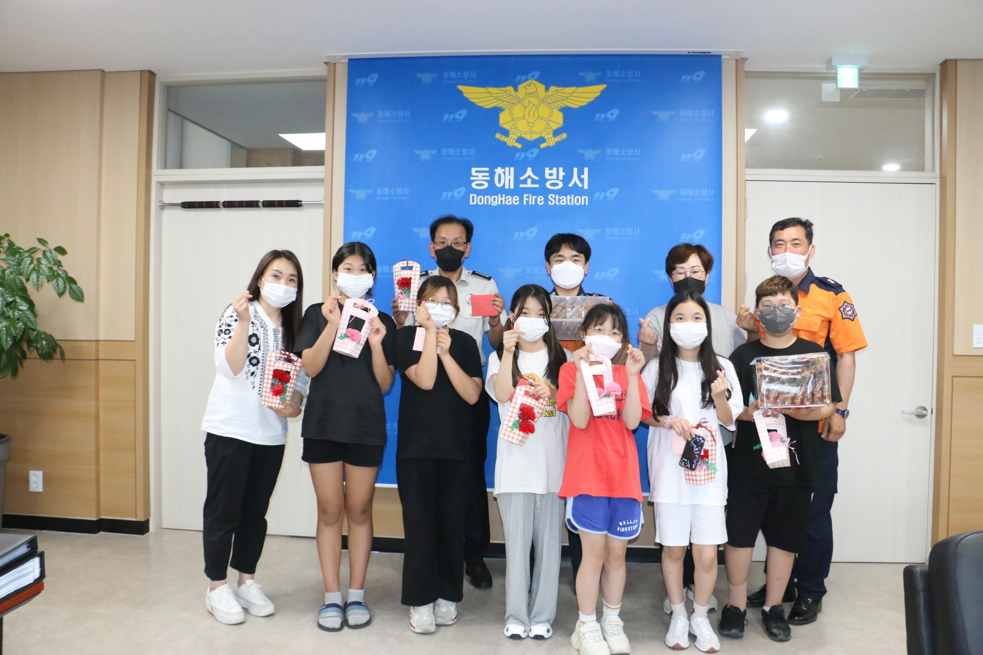 5월24일 17시 향로청손년 문화의 집 천사 6명과 지도교사분들이 소방서를 방문 산불진압으로 고생한 소방관들을 위해 손수 만든 쿠키와 예쁜 카네이션, 편지를 전달하고 위문하였습니다.(정말 고마워요^^)