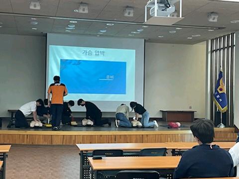 주요 내용은 ▲심폐소생술 및 자동심장충격기(AED) 사용법 ▲기도폐쇄 응급처치 등 이론 ▲소화기 사용법 등이다.