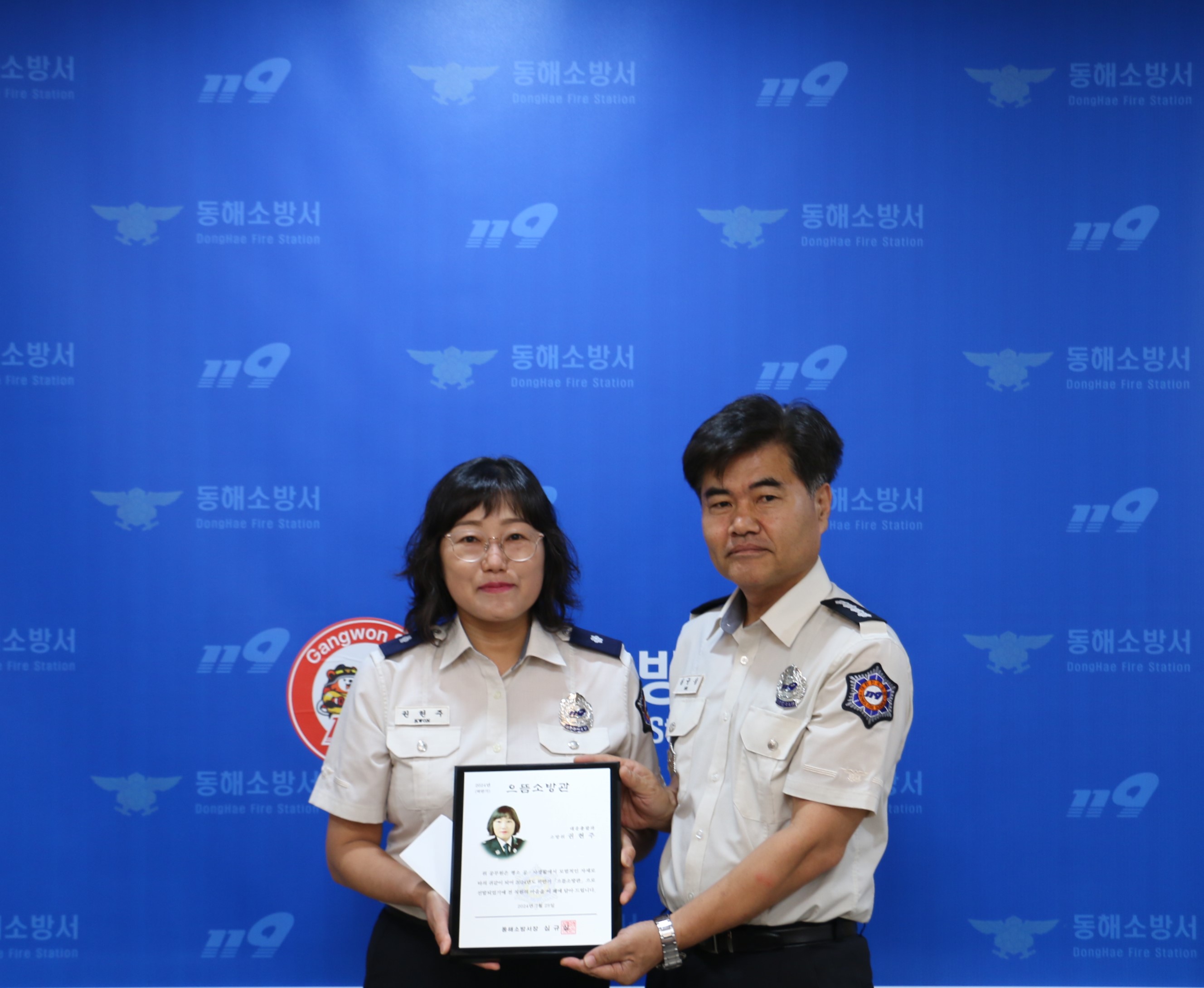 으뜸소방관은 평소 공·사에서 모범적인 자세로 귀감이 되는 소방관을 동료 직원들의 투표로 선정하는 제도로 2024년 하반기 으뜸소방관에는 동해소방서 대응총괄과에 근무하는 소방위 권현주가 선발됐다.