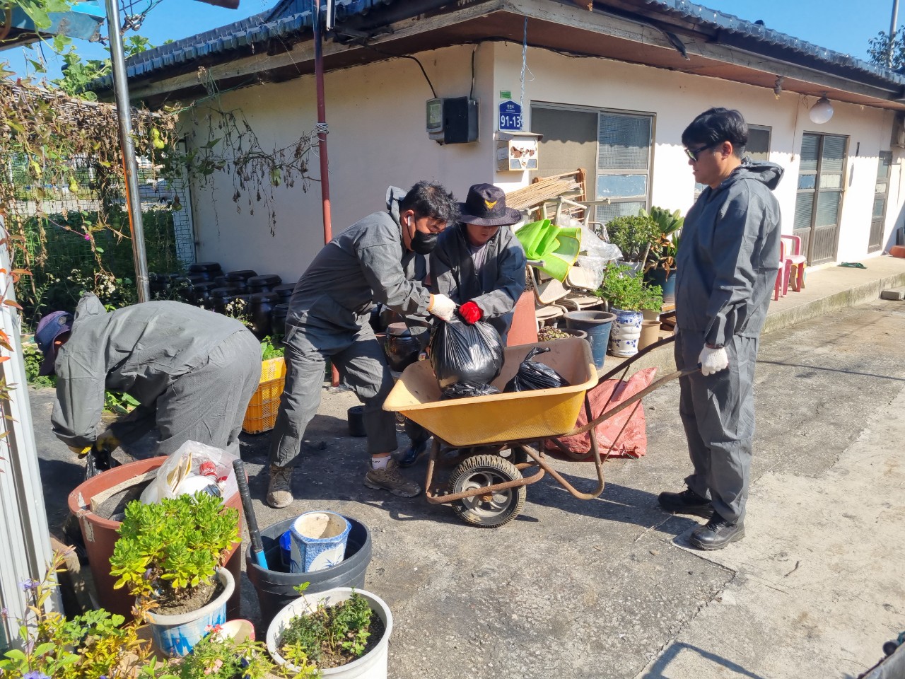 대원들은 소통을 통해 필요한 지원사항을 파악하여 피해주택 주변 토사물 제거, 쓰레기 수거, 연탄창고 보수 등 다양한 활동을 실시했다.