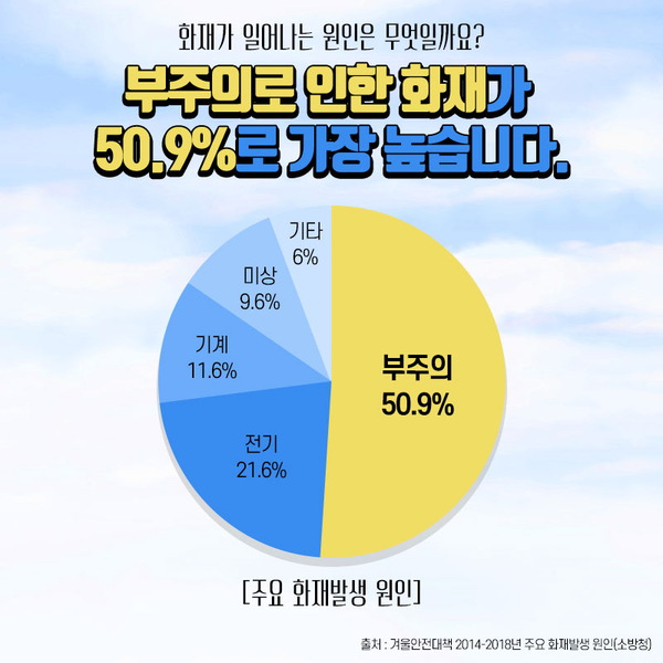 부주의로 인한 화재가 50.9%로 가장 높습니다.