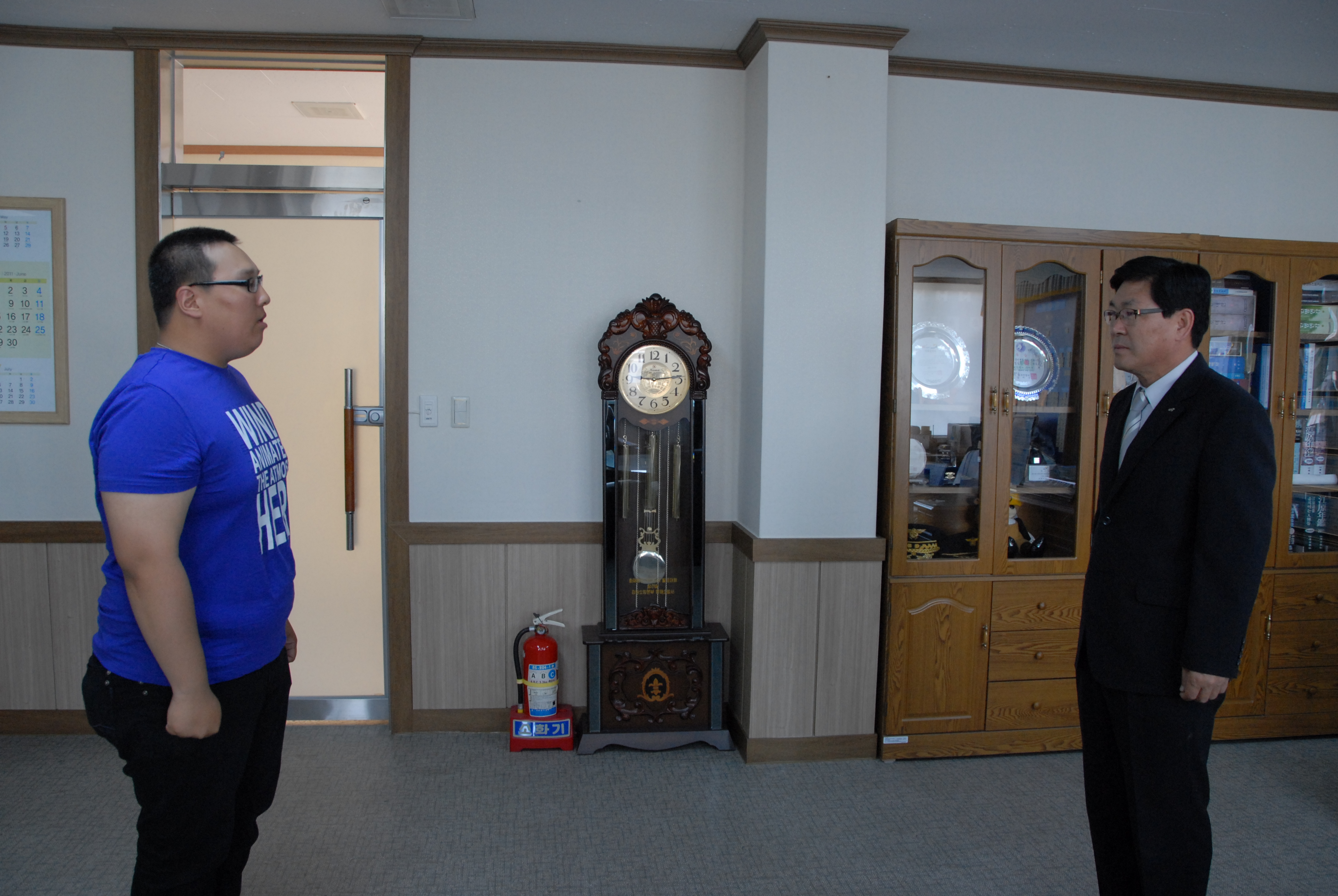 동해소방서 (서장) 김남숙은 금일 오전 집무실에서 공익근무요원 신규자 전입 신고식을 가졌습니다.