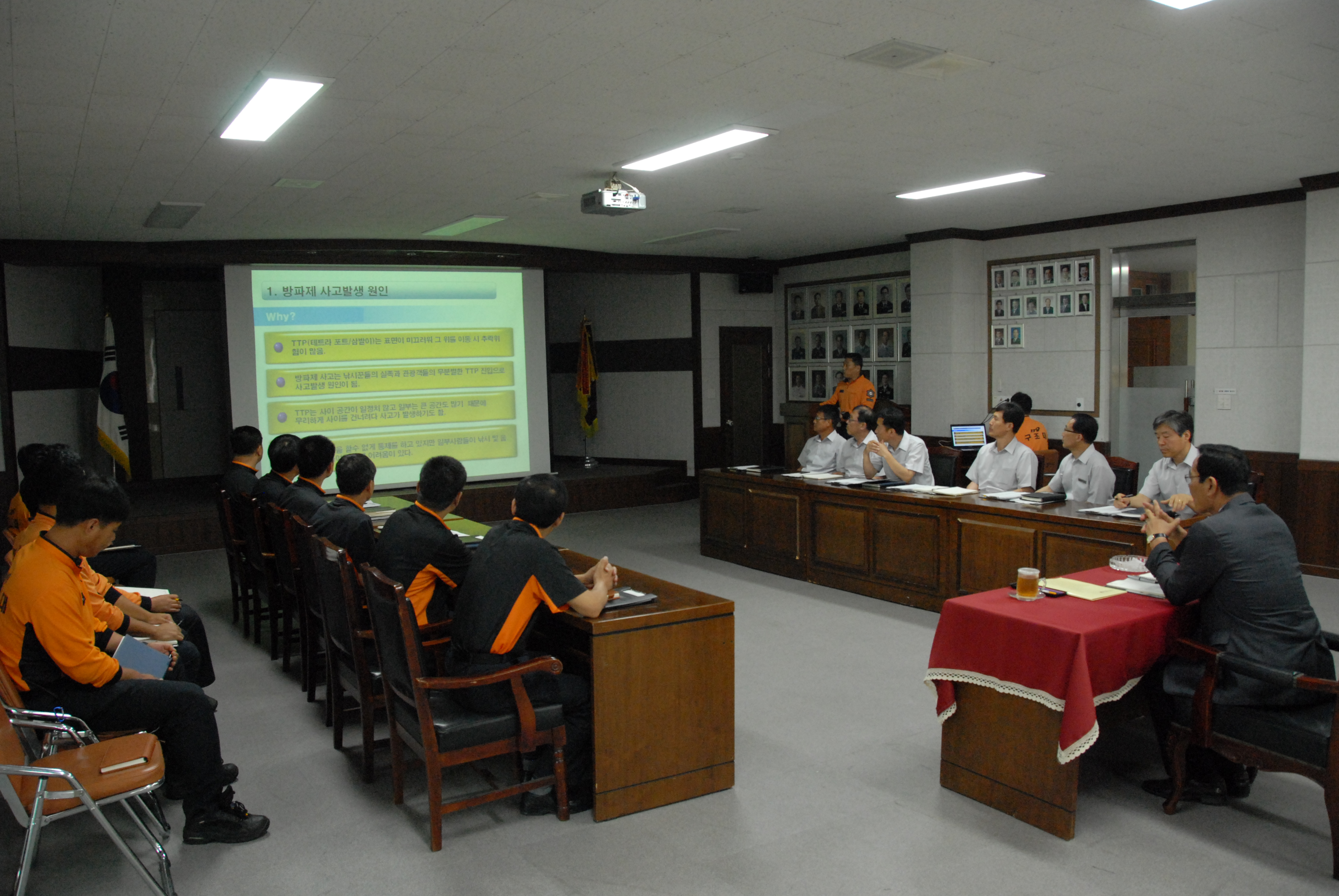 이날 훈련에서 유관기관과의 합동훈련 계획, 비상연락체계 강구, 구조대책등을 논의 하였습니다.