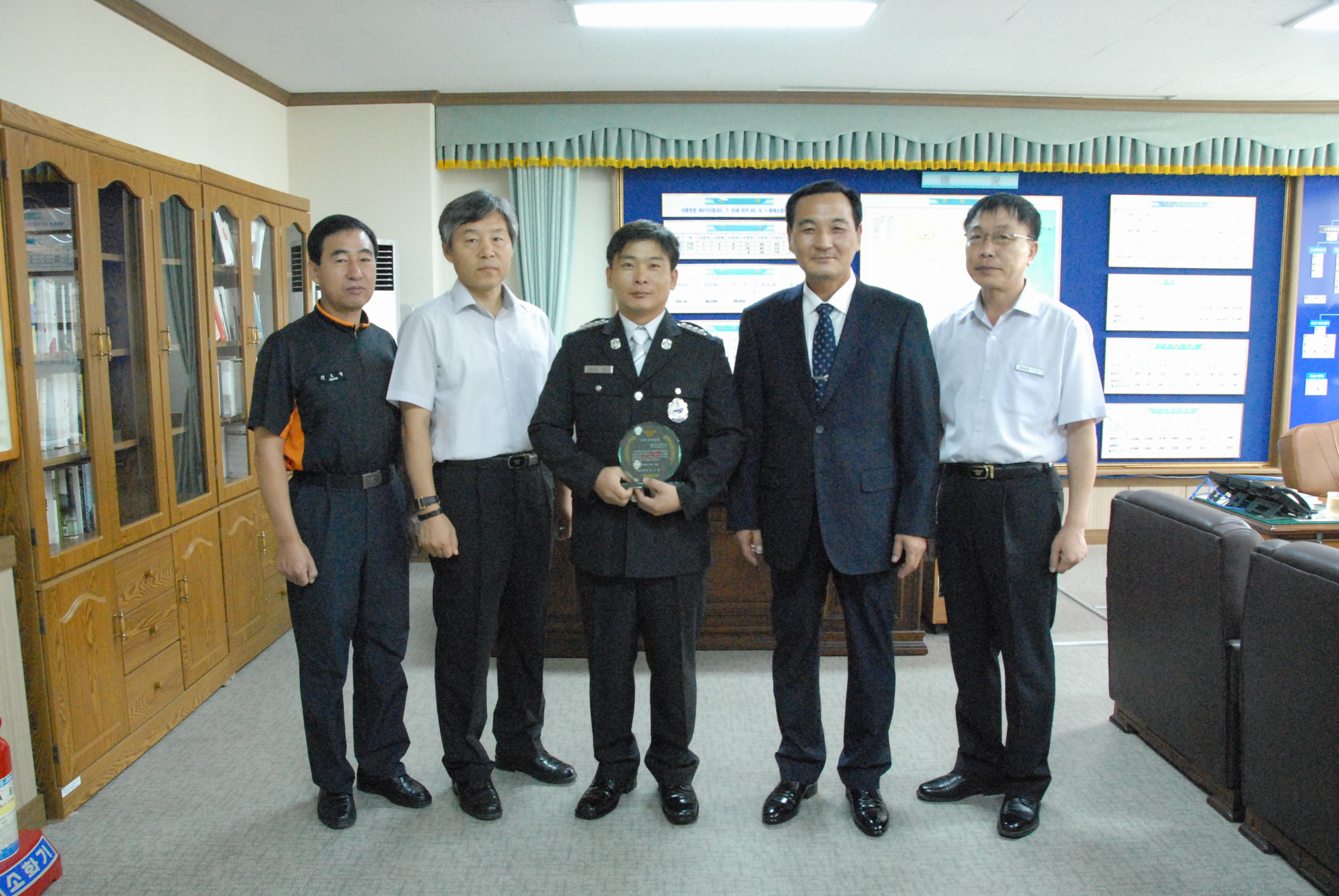 오늘(12.09.10) 동해소방서(서장 김기성)에서는 활기찬 직장분위기를 조성하고 직원 사기진작에 기여코자 자체 모범공무원을 선발하여, 선발자(현장대응과 소방장 송일선)에 대한 모범패 수여식을 가졌습니다.