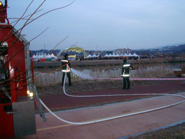 동해소방서(서장 김남백)는 2013년 2월 23일~24일 이틀간 제 15회 동해 정월대보름 달맞이 축제의 안전하고 성공적인 개최를 위해 행사운영에 필요한 식수지원 및 달집태우기, 불꽃놀이 행사 대비 위험예상지역 예비주수를 실시하였다.