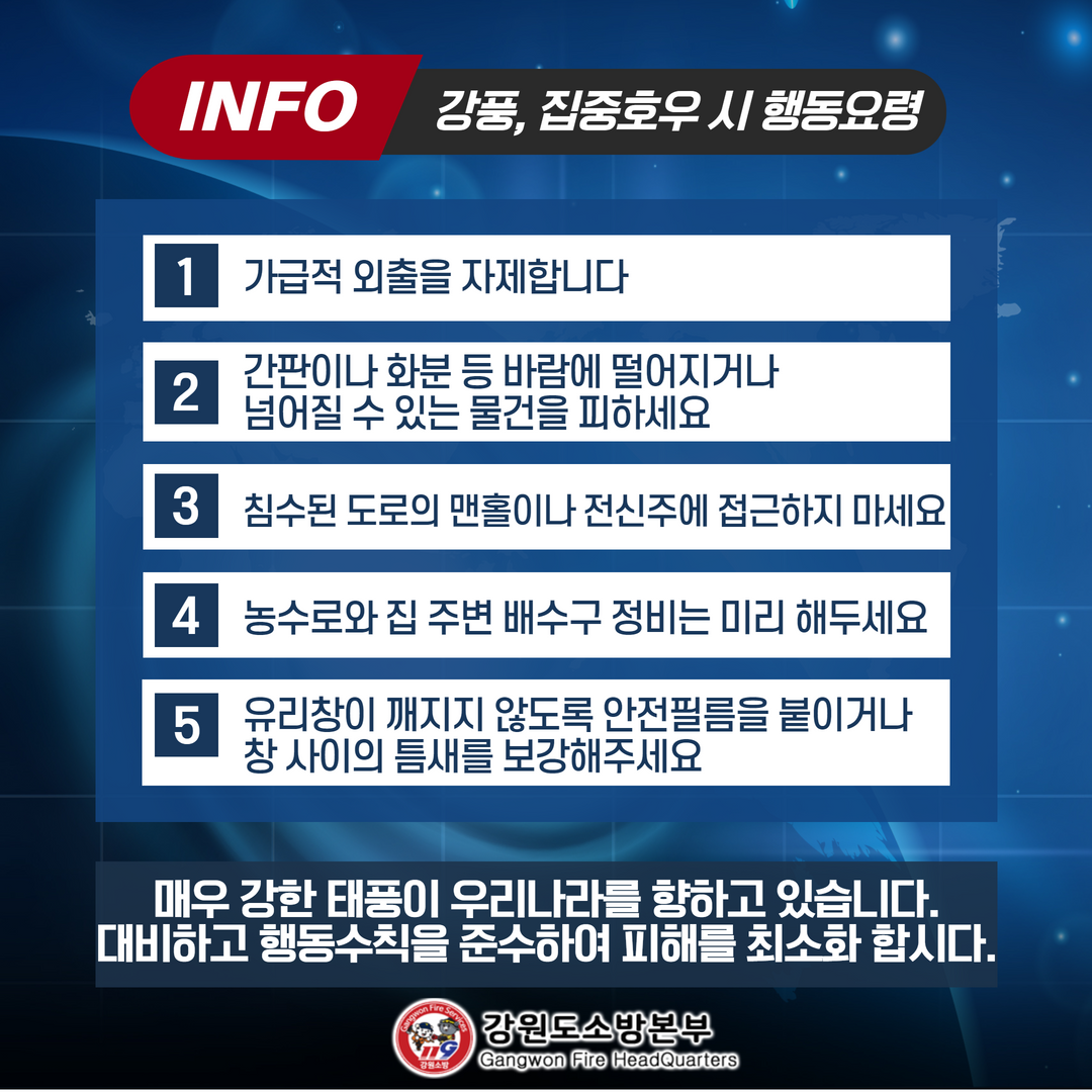 태풍 '힌남도' 북상에 따른 행동수칙 준수