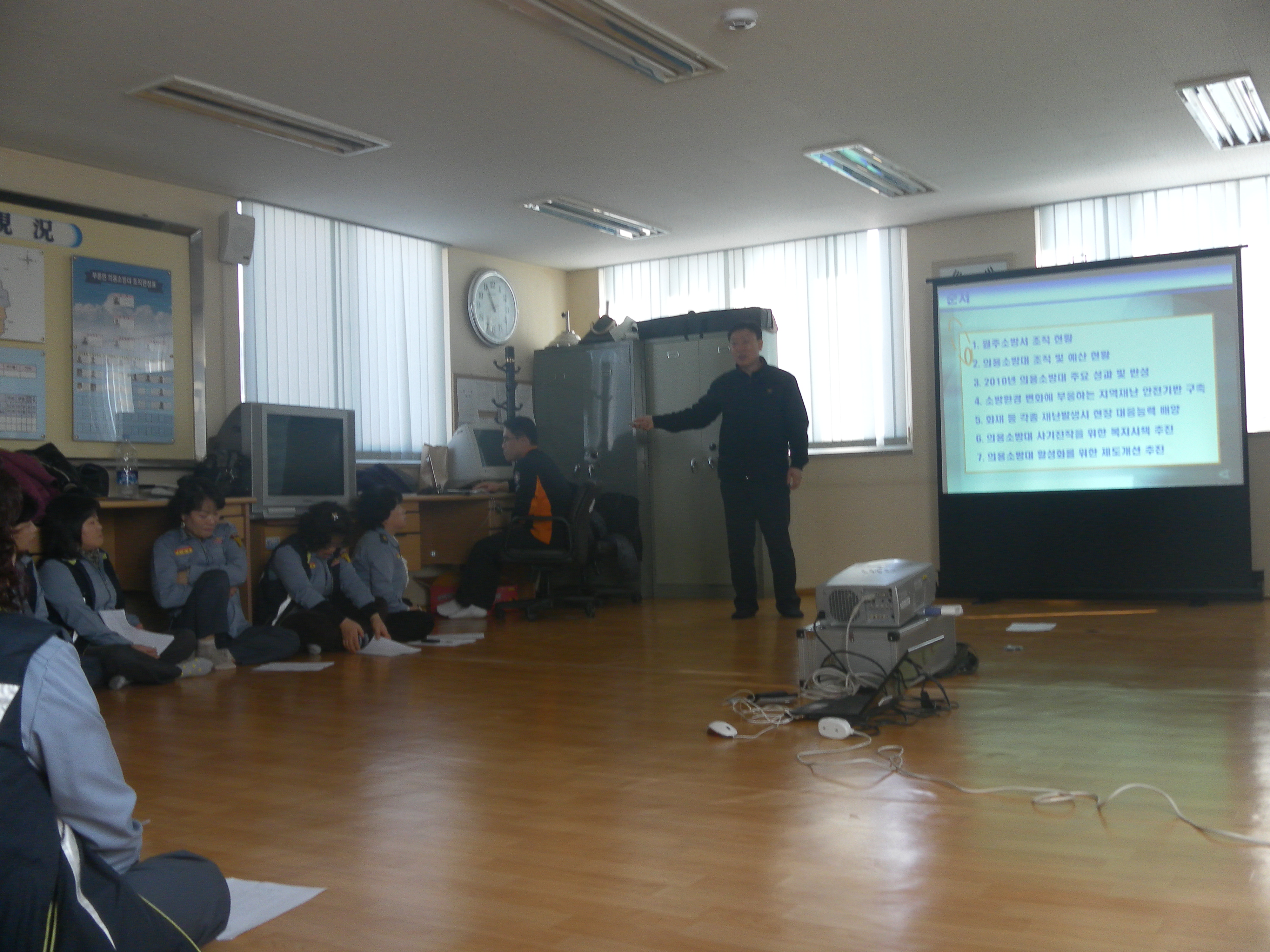 부론여성의용소방대는 금일(21일) 2011년 처음으로 정기교육을 실시했습니다. 김창현계장님과 문막센터장님께서 4시간동안 열성으로 교육을 해주셨습니다. 교육을 끝내고 법천리에 있는 섬강주변 잡풀을 소각하는 등 산불예방홍보도 병행 실시했습니다