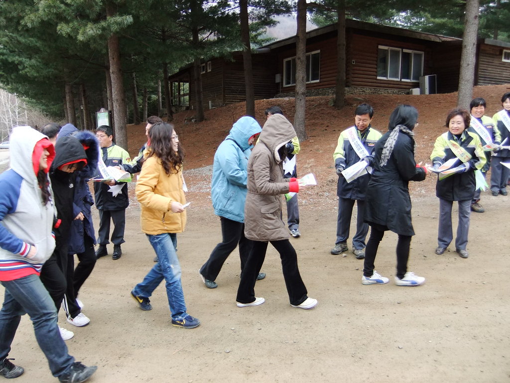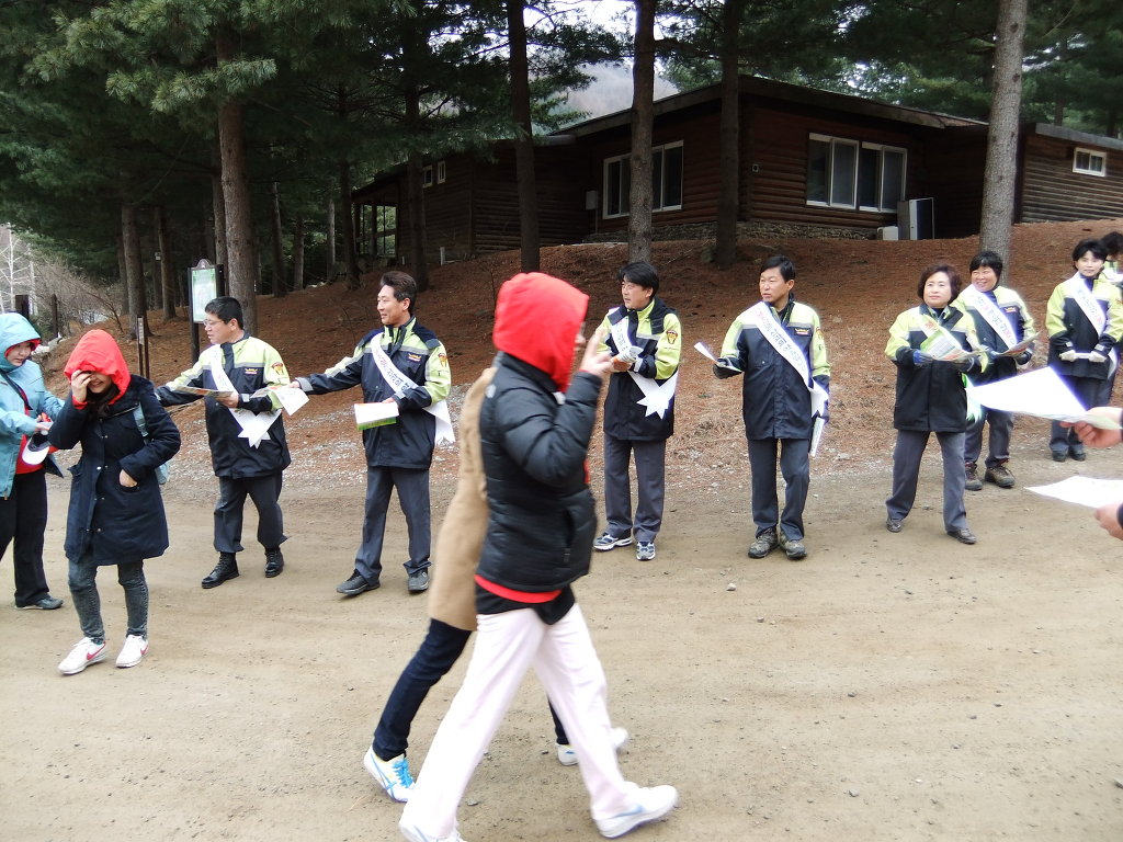 횡성소방서 소속 둔내의용소방대 청태산 등산로 입구에서...