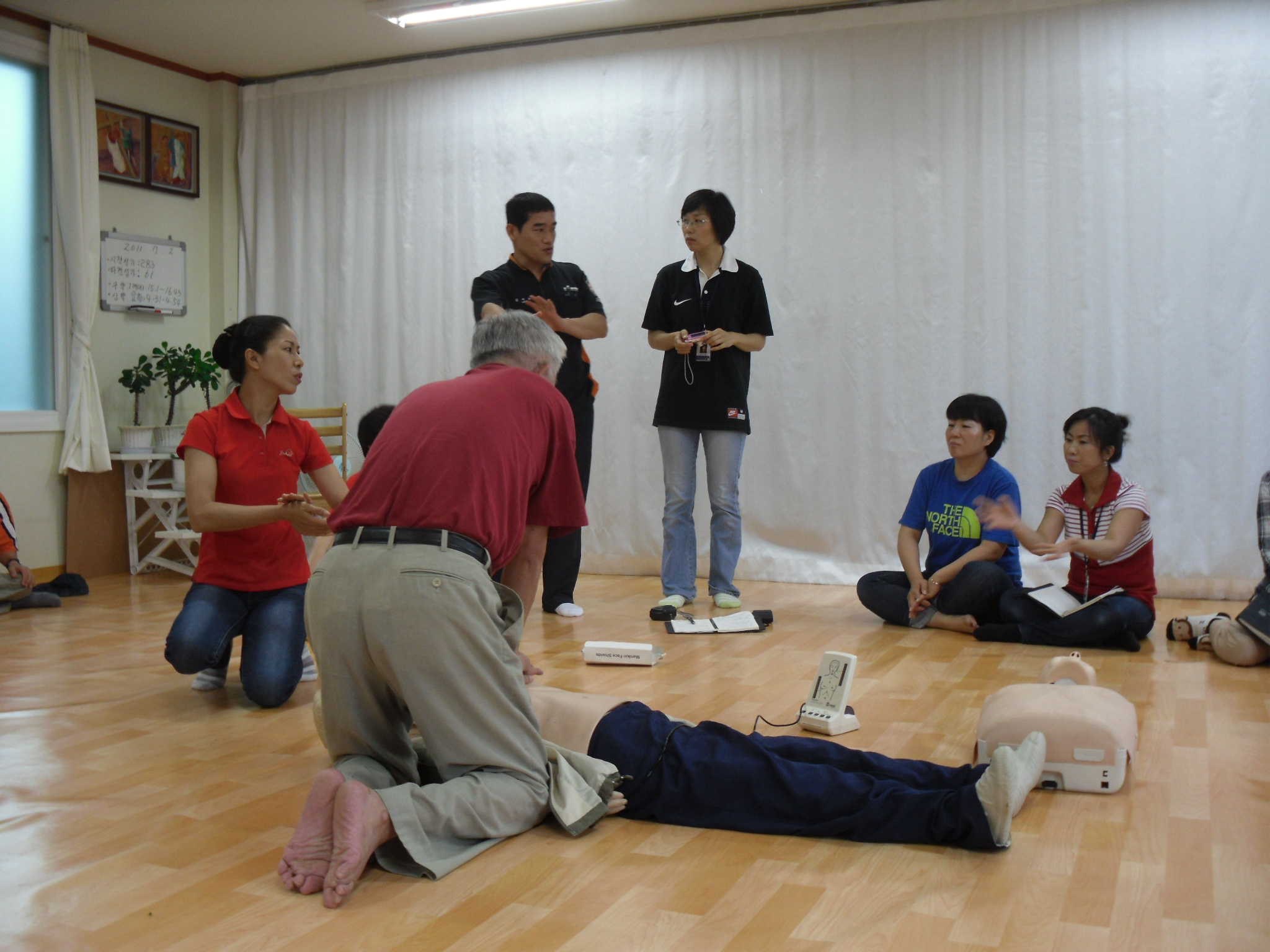 2011년 7월 8일(금) 09:30 ~ 12:00 흥업여성의용소방대 (대장 오오석외 18명)는 갈거리사랑촌 베닉노의 집 가족들과 선생님들을 대상으로 심폐소생술(CPR) 및 하임리히법(기도 or 식도에 이물질이 걸렸을 때 제거하는 방법) 교육 실습을 하고 왔습니다.