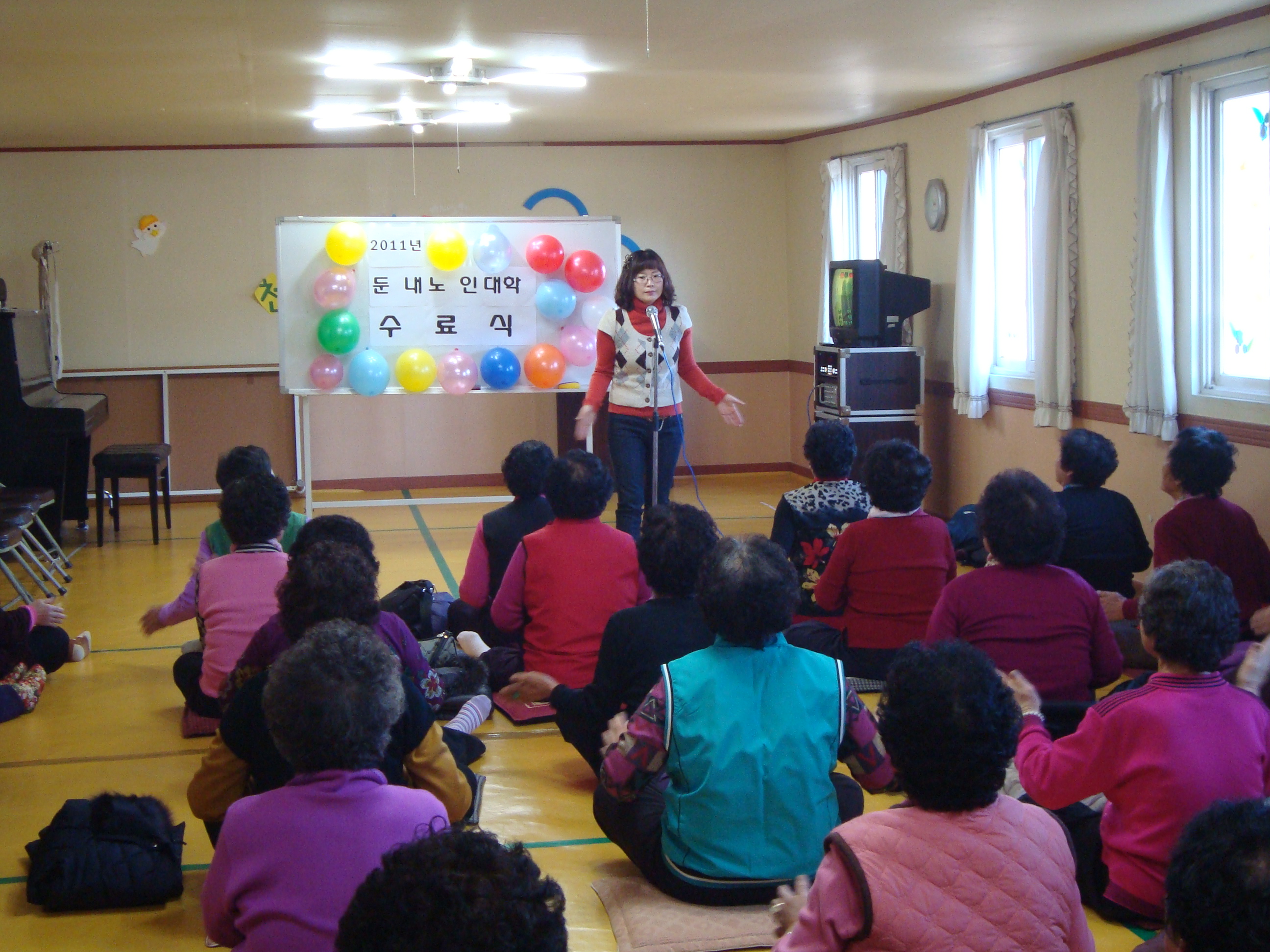 둔내노인대학에서 허은란대원이 레크레이션 봉사를 하였습니다.