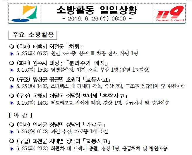 소방활동 일일상황(6. 26. 수) 06:00