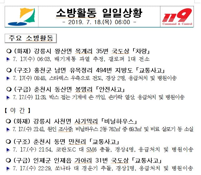 소방활동 일일상황(7. 18. 목) 06:00