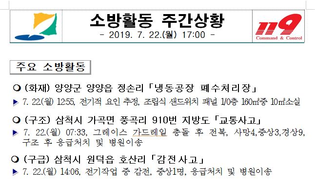 소방활동 주간상황(7. 22. 월) 17:00