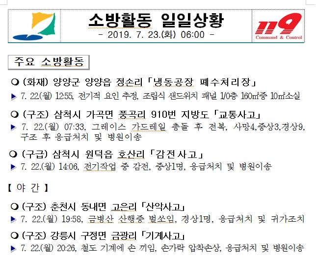 소방활동 일일상황(7. 23. 화) 06:00