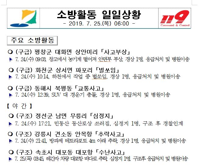 소방활동 일일상황(7. 25. 목) 06:00