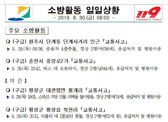 소방활동 일일상황(8. 30. 금) 06:00