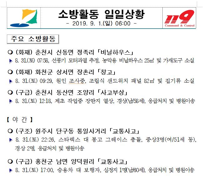 소방활동 일일상황(9. 1. 일) 06:00