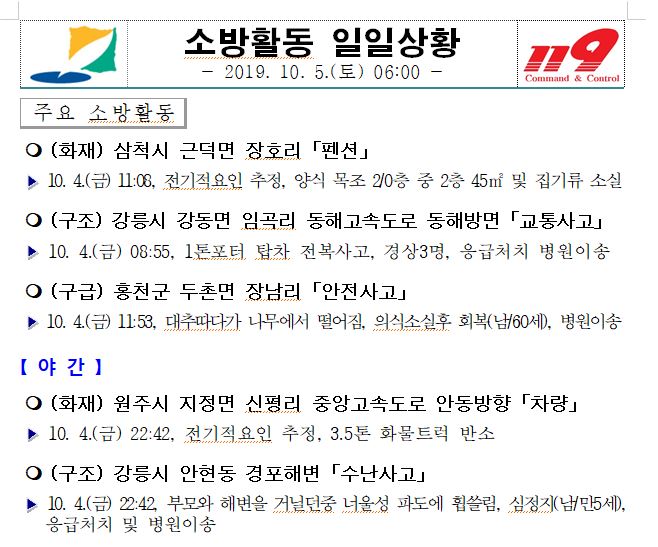소방활동 일일상황 (10. 5. 토) 06:00