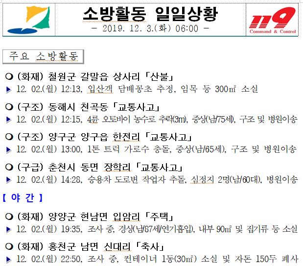 소방활동 일일상황(12.03. 화) 06:00