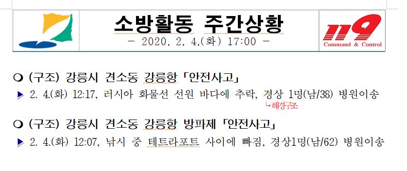 소방활동 주간상황 (2. 4. 화) 17:00