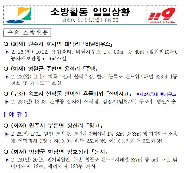 소방활동 일일상황 (2. 24. 월) 06:00